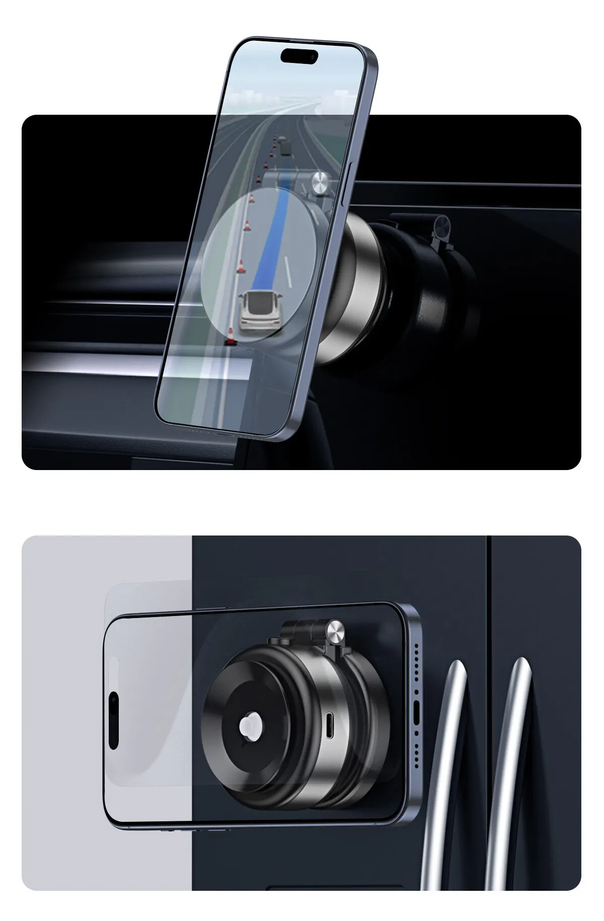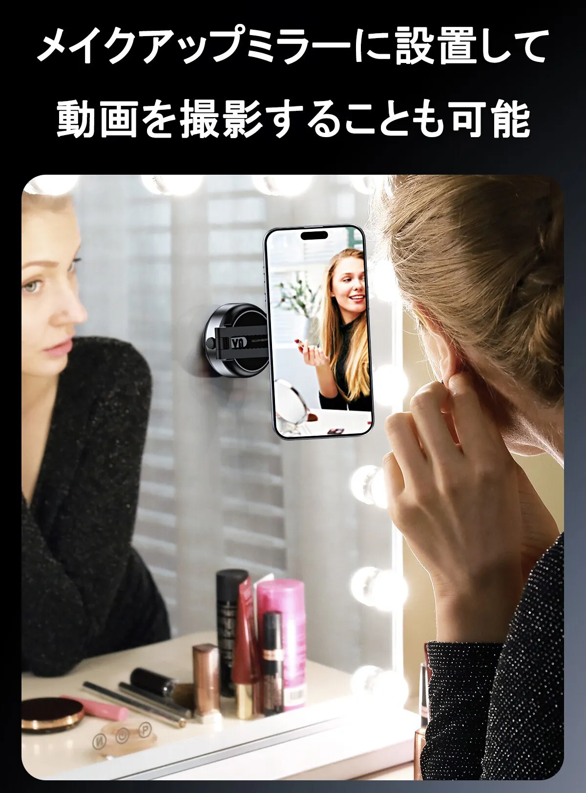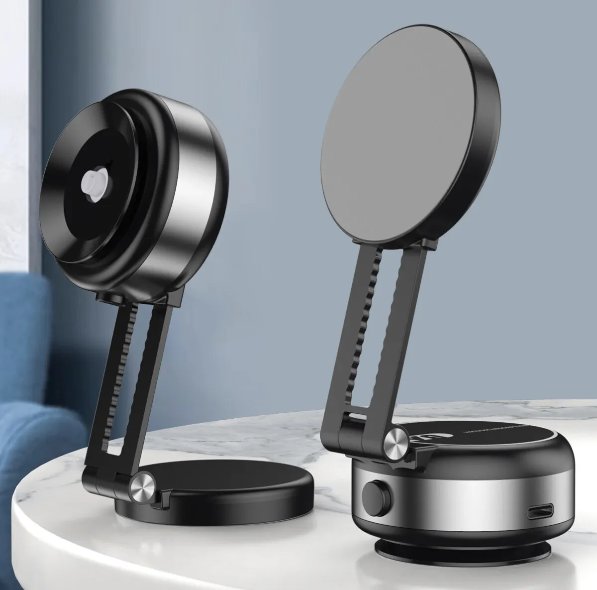 スマホがスタンドの吸盤に触れると、本体が自動的にスマホと吸盤の間の空気を真空状態まで抜き取り、スマホを確実に吸着します!
