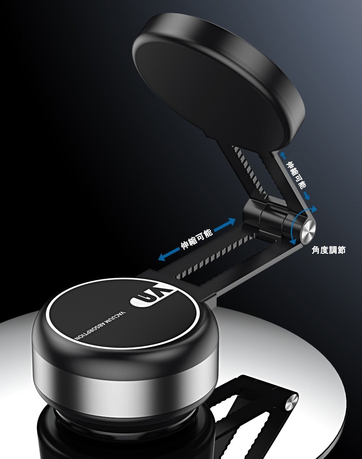 ● 真空吸着で強力固定!5kgまでの物をしっかり吸着、安定性抜群!