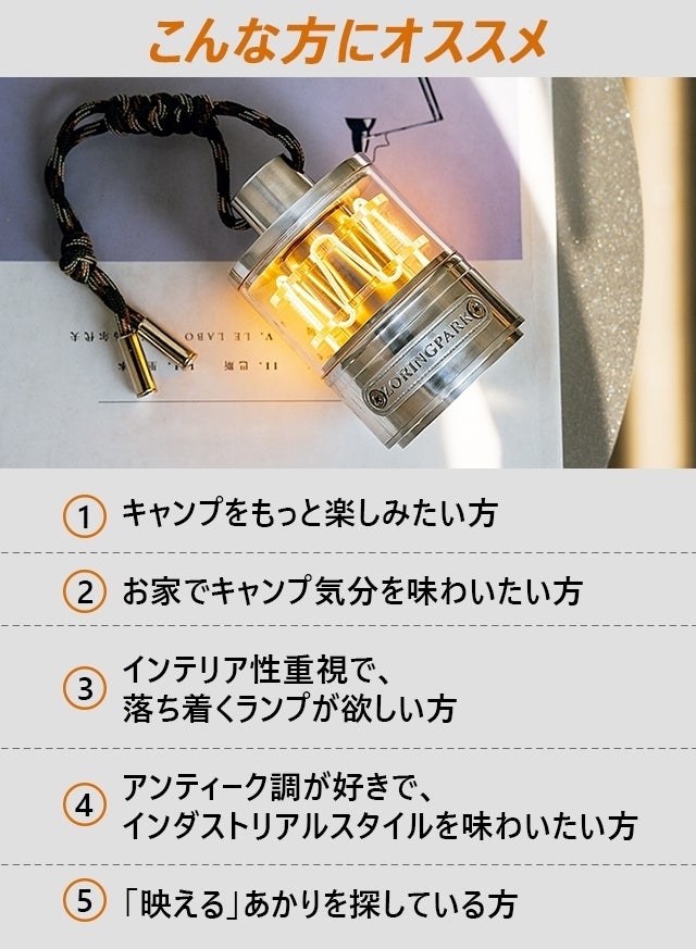 テントや自宅の夜に穏やかな灯を届ける「ZORING PARK」は、