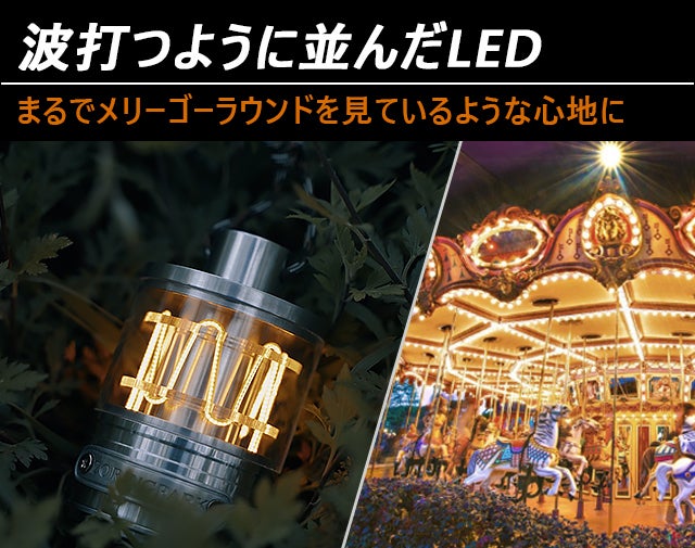 LEDは波打った形をしており、灯が揺らめいているような印象を受けます。