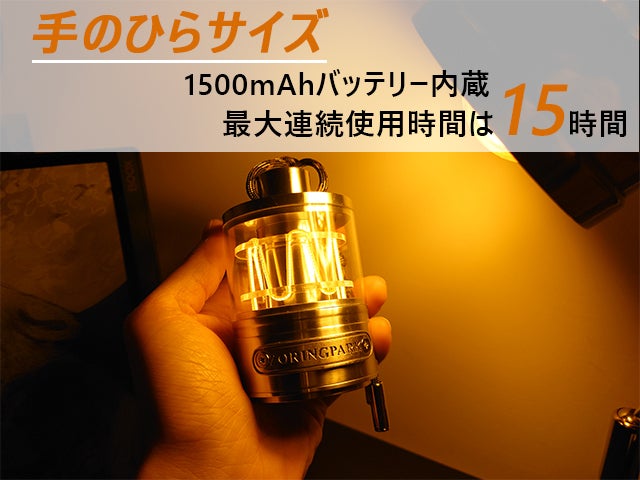1500mAhの内蔵バッテリーにより、最大15時間点灯します。
