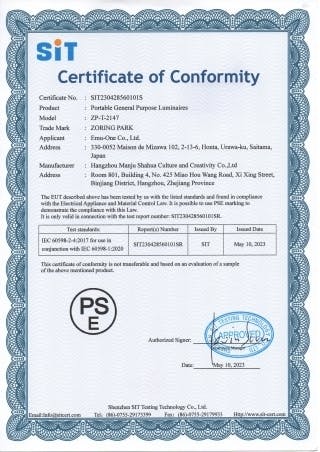 PSEとは"Product Safety Electrical Appliance and Materials"を略したもので、PSEマークは電気製品の製造や販売などを規制、安全性について定めている日本の法律に適合し、それを確かめる試験に合格したことを証すものです。