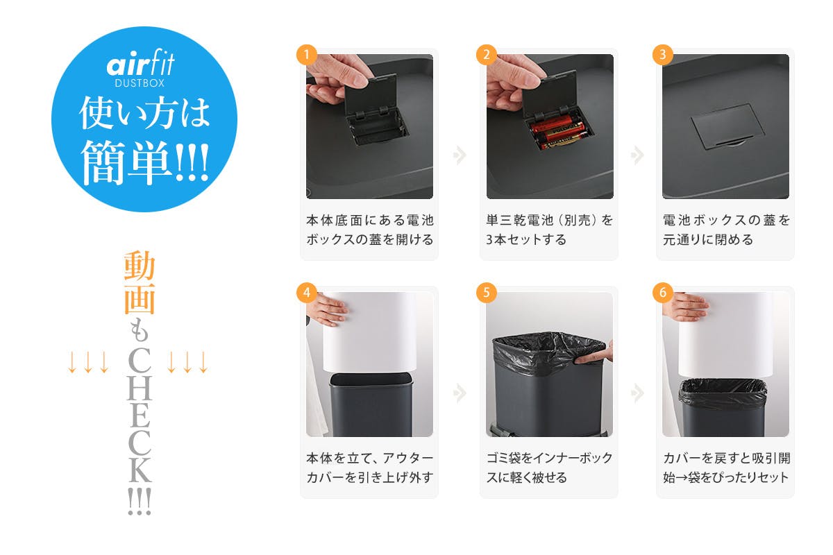 ※乾電池、ゴミ袋は市販のものを別途ご用意ください。