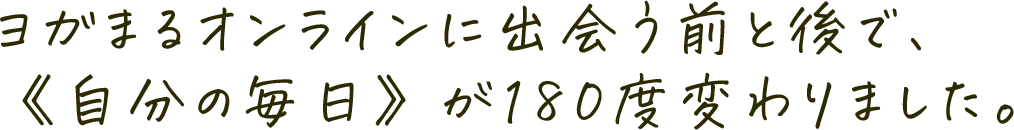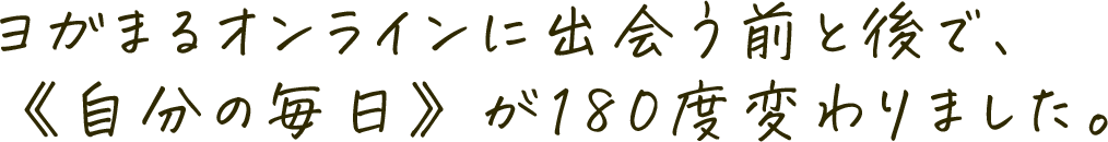 毎日のヨガでその日の疲れがその日のうちに取れるようにもなり、体も気持ちもずいぶん楽になりました。