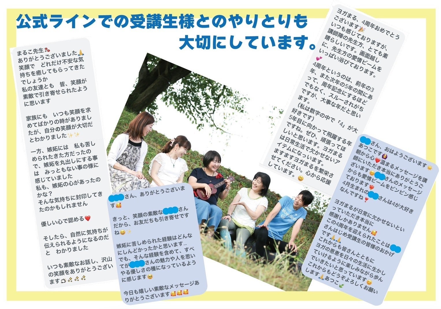 講師と受講生はもちろん、受講生同士のつながりも大切にしたい「ヨガまる」。