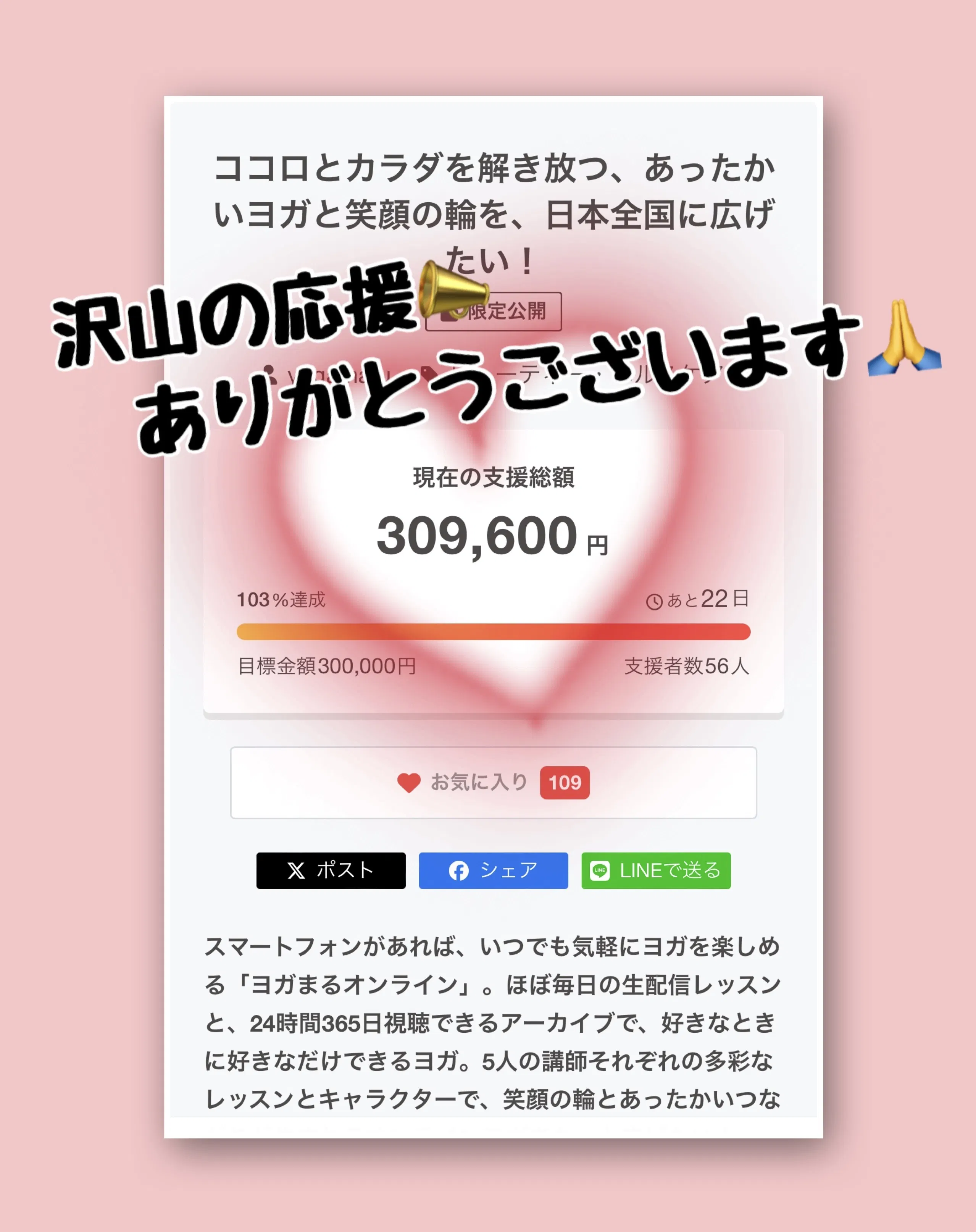 「ヨガまるオンライン」のクラウドファンディングを応援くださり、誠にありがとうございます。