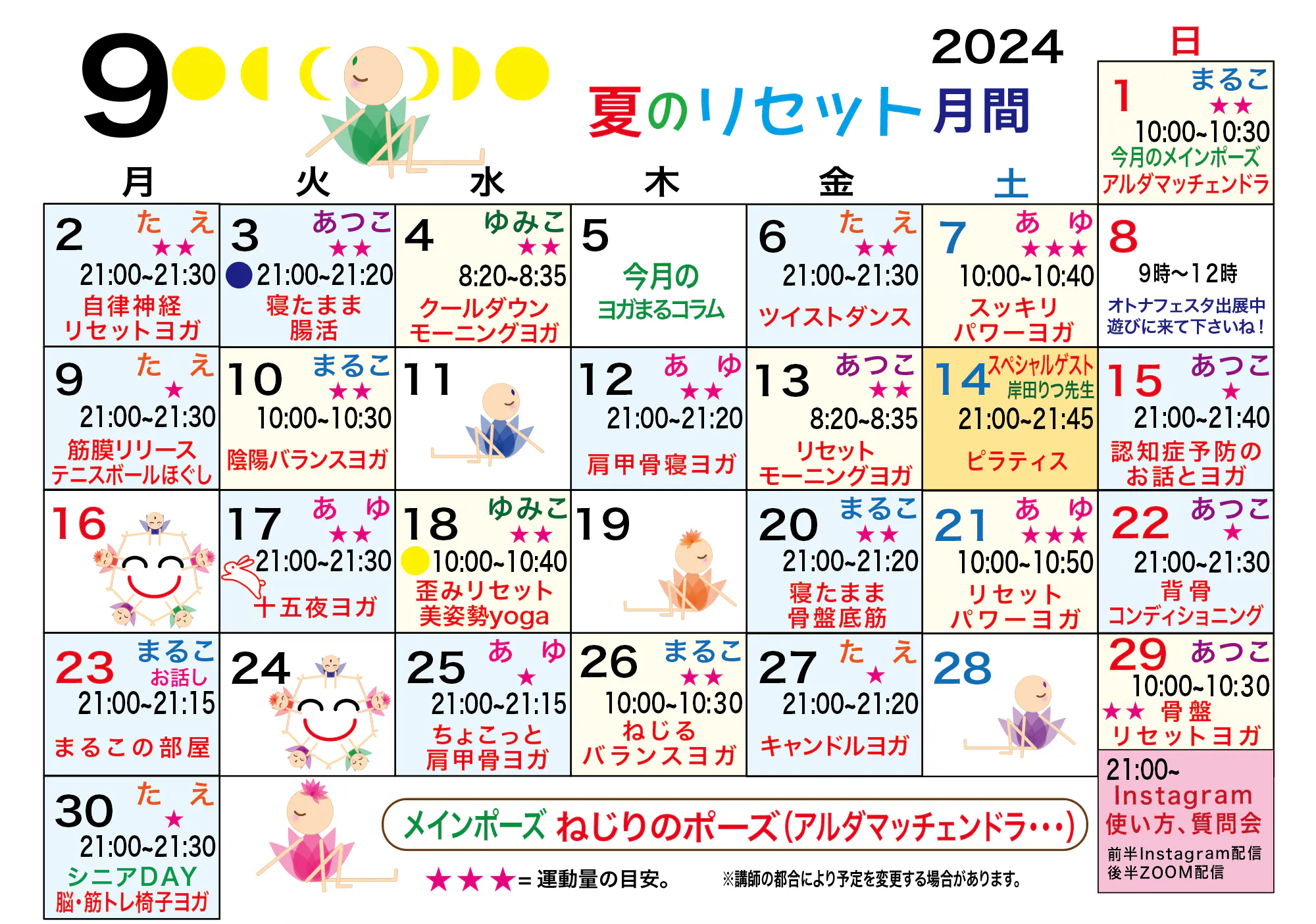 カレンダーのヨガまるちゃんもねじりのポーズしています(o^^o)