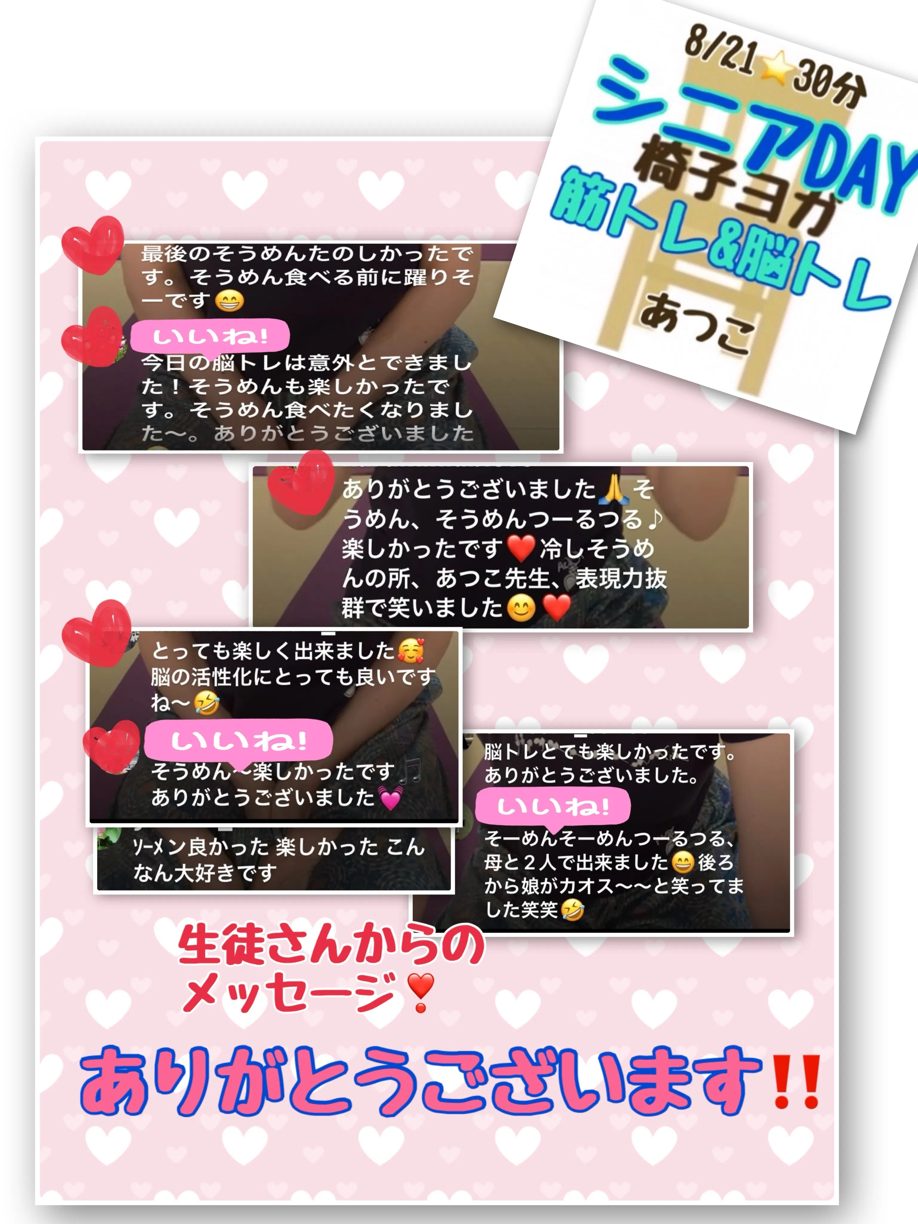 レッスンが終わると生徒さんから嬉しいコメント!