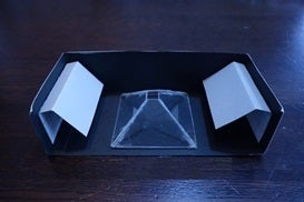 (出典:CNet Japan 佐藤信彦氏 2015年08月10日「スマホで楽しむ3Dホログラム風映像--夏休みの自由研究に」、KICKSTARTER Jeff Nybo氏 "$9 Clearest Phone Hologram (Pepper's Ghost Pyramid)")