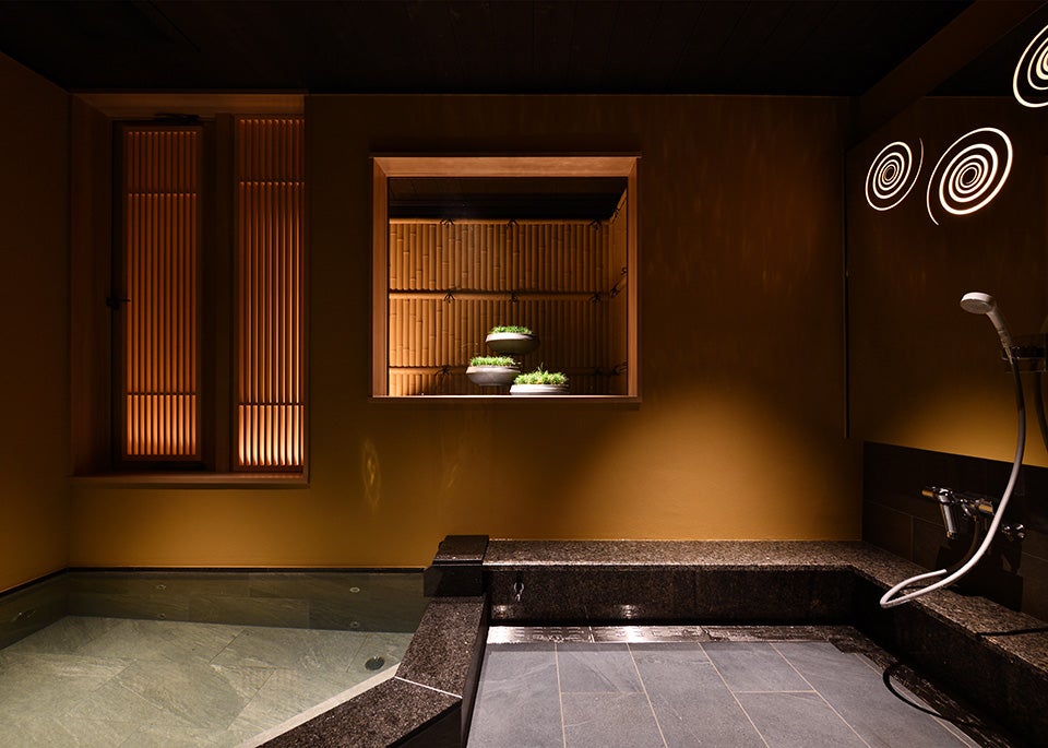 「さだ助別邸ICHIJO」館内には天然香住温泉を源泉とし、サウナを設置した2つの異なるデザインの貸切風呂をご用意しております。