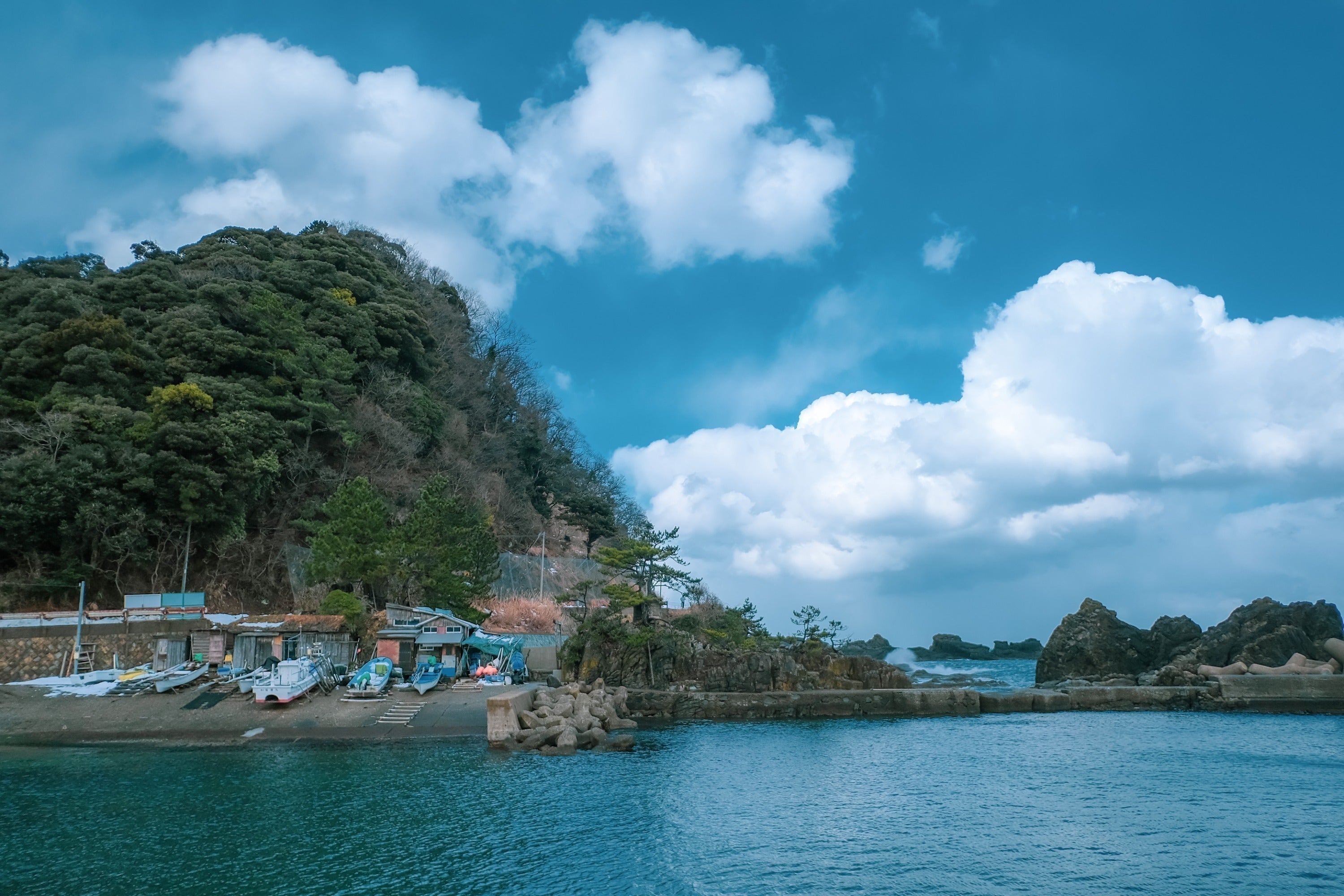 目の前に広がる日本海。あたりを見渡すと雄大な山々に囲まれ、その恵みを四季折々に味わうことができ、