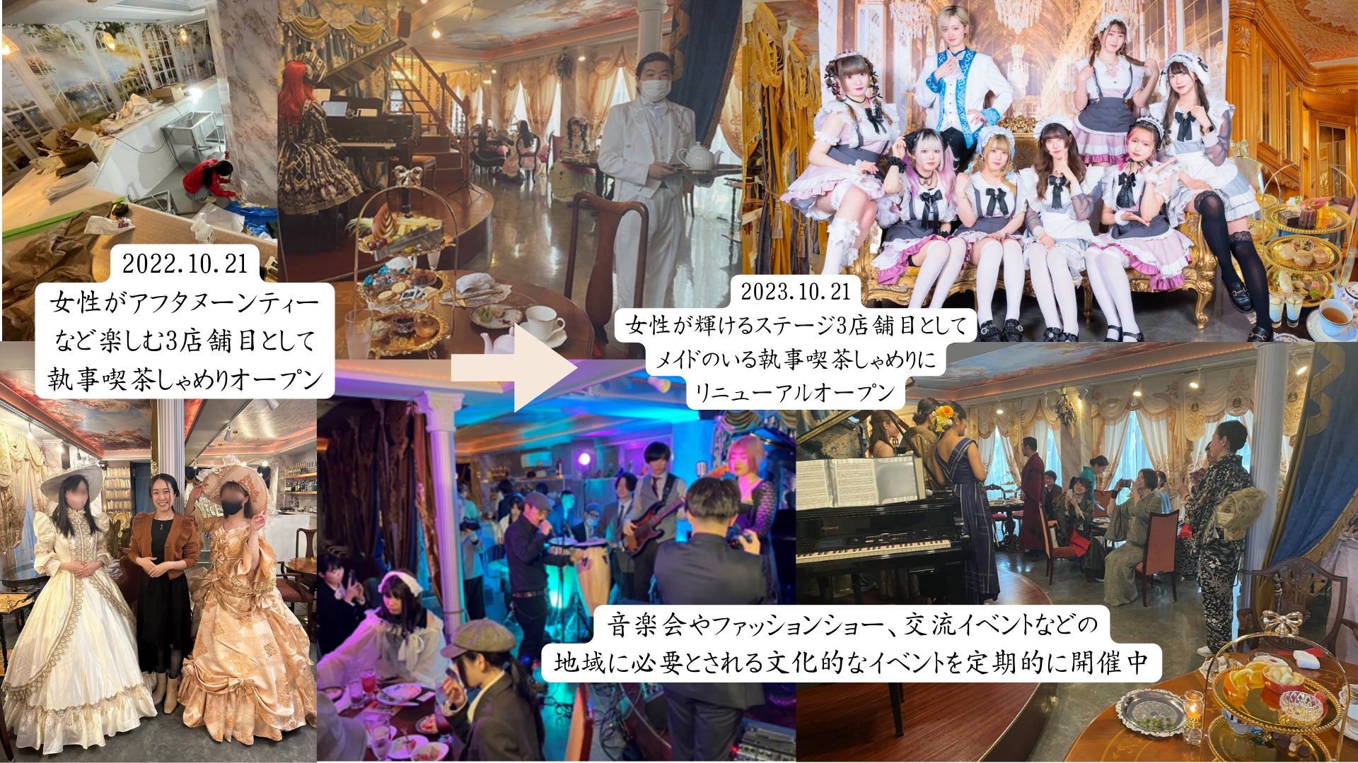 その後、事業の発展のため、カフェからメイドカフェ&バーに業態を変えました。これまで7年間、地域へ癒しを届け愛されるお店となれるように、様々な苦難を乗り越えて営業を続けてきました。沢山のお客様に支えて頂き、なんとかここまでやってこれました。