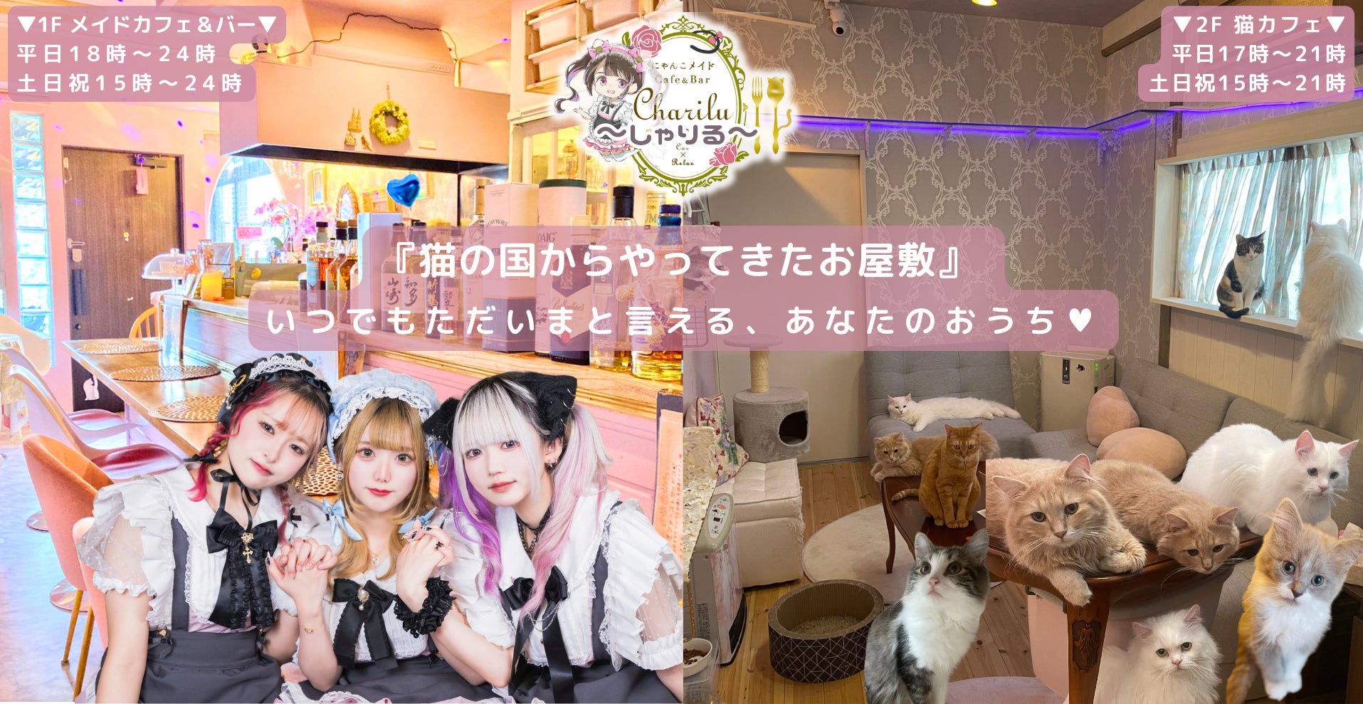お店の名前は「Charilu~しゃりる~本店」と申します。ご主人様お嬢様の「ただいま」に「お帰りなさい」とお出迎えすることをメイド一同いつも心待ちにお給仕しております。
