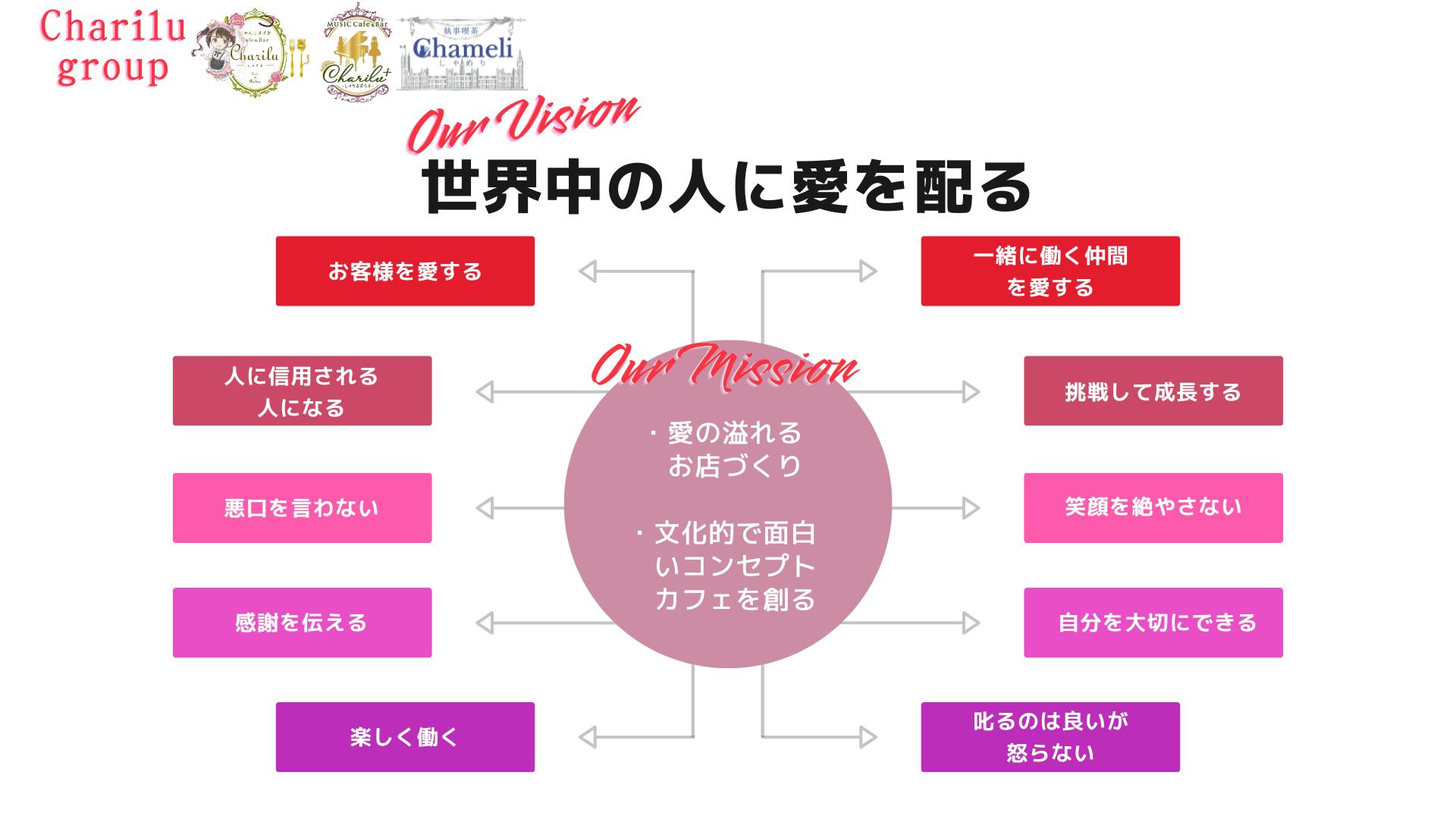 しゃりるは『女性が輝けるステージを創りたい』という思いで始めた事業。只の飲み屋さんではなく、女性の社会進出、教育や成長を担うお店にしたいと、必死で勉強し、ビジョンやミッション、行動理念を設定し、組織体制を整えてきたお店です。