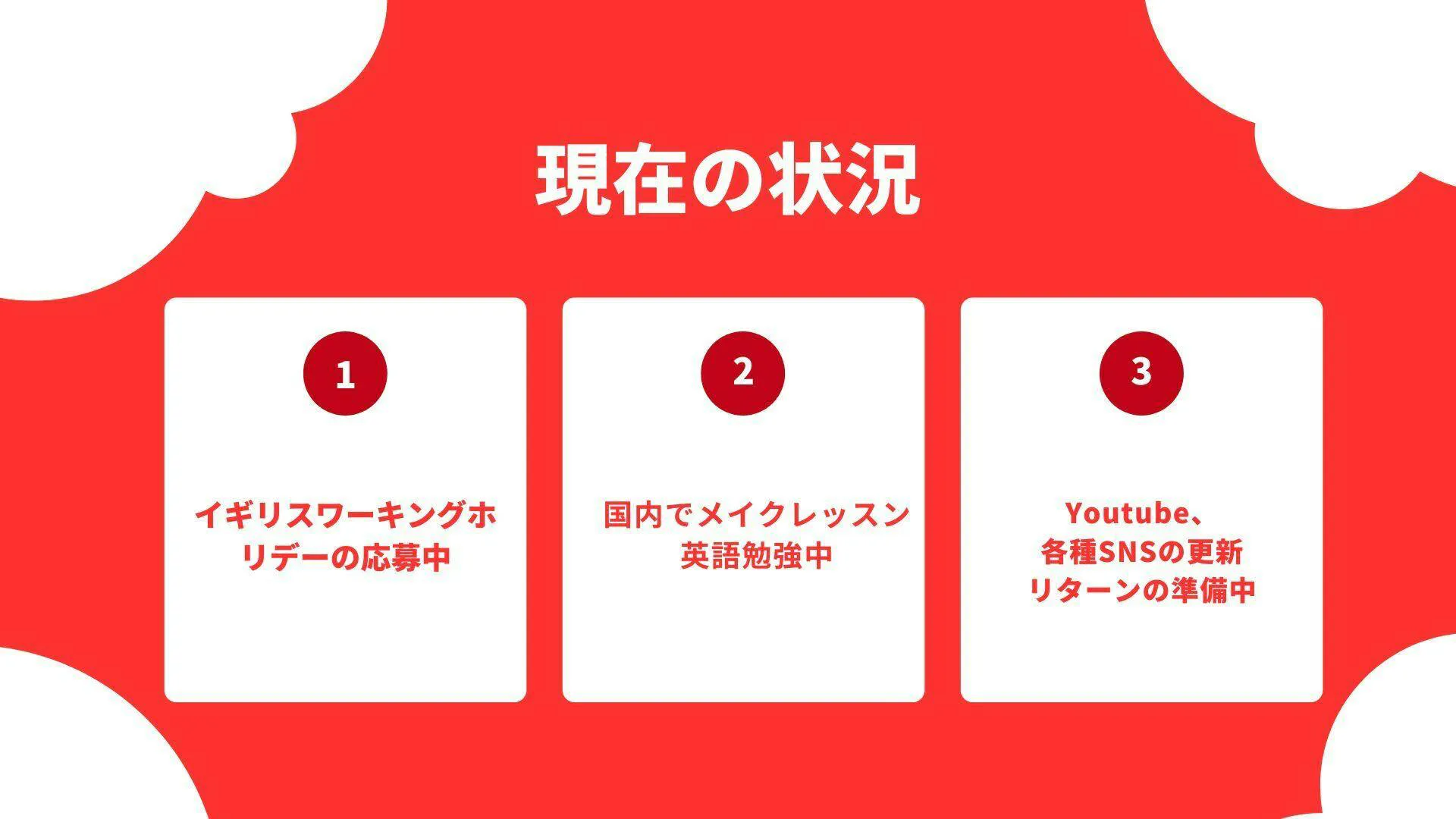 現在海外での勉強計画を立てていて、プログラムの選定や滞在先の準備など、クラウドファンディングに向けて色々動いています!