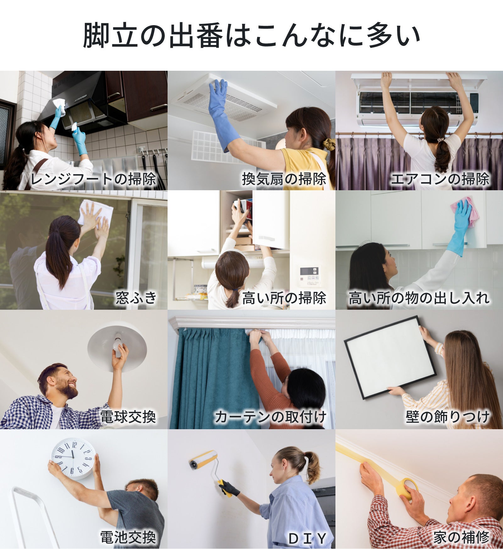 少し考えただけでも、脚立はこんなに出番が多いのに