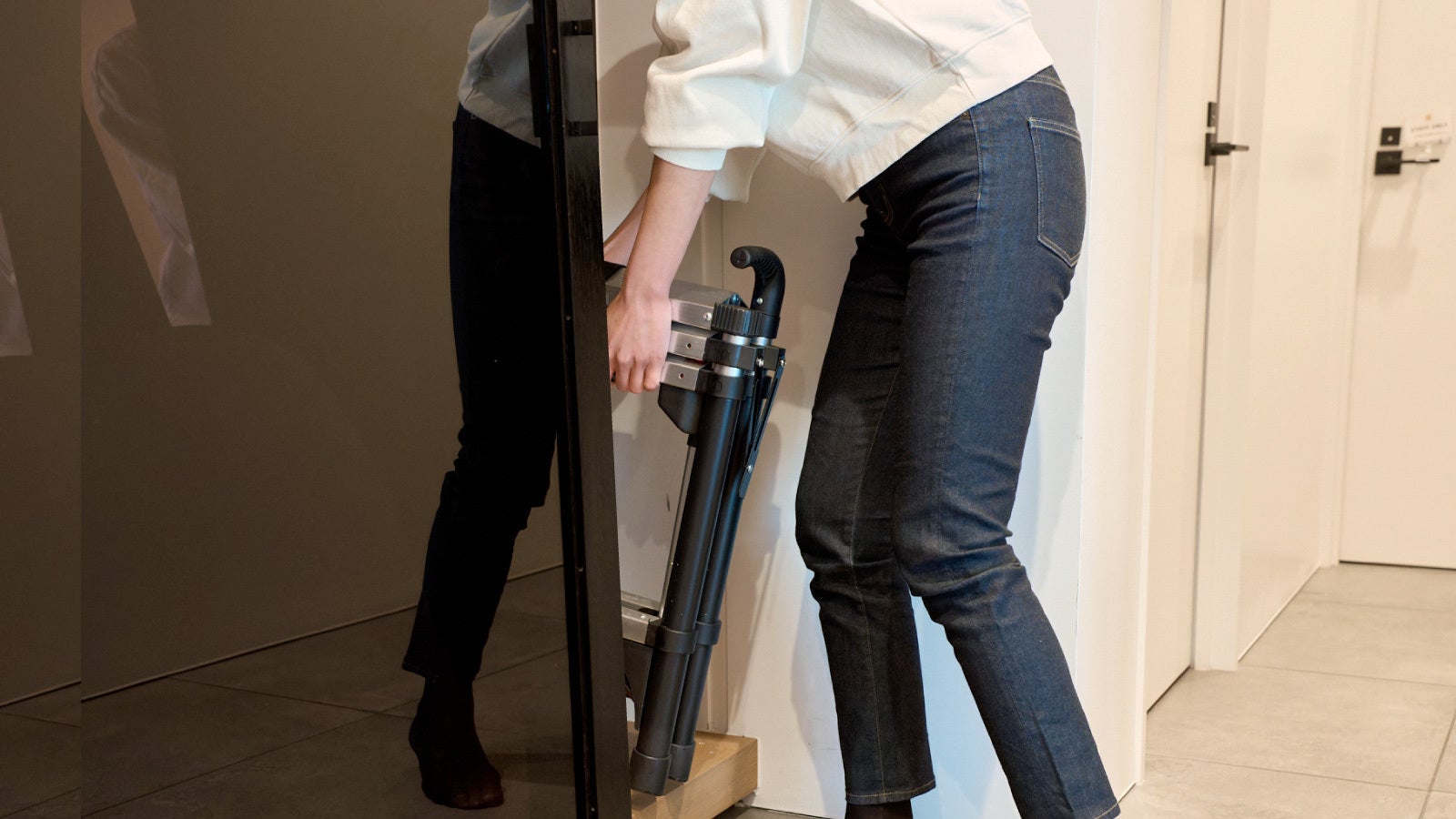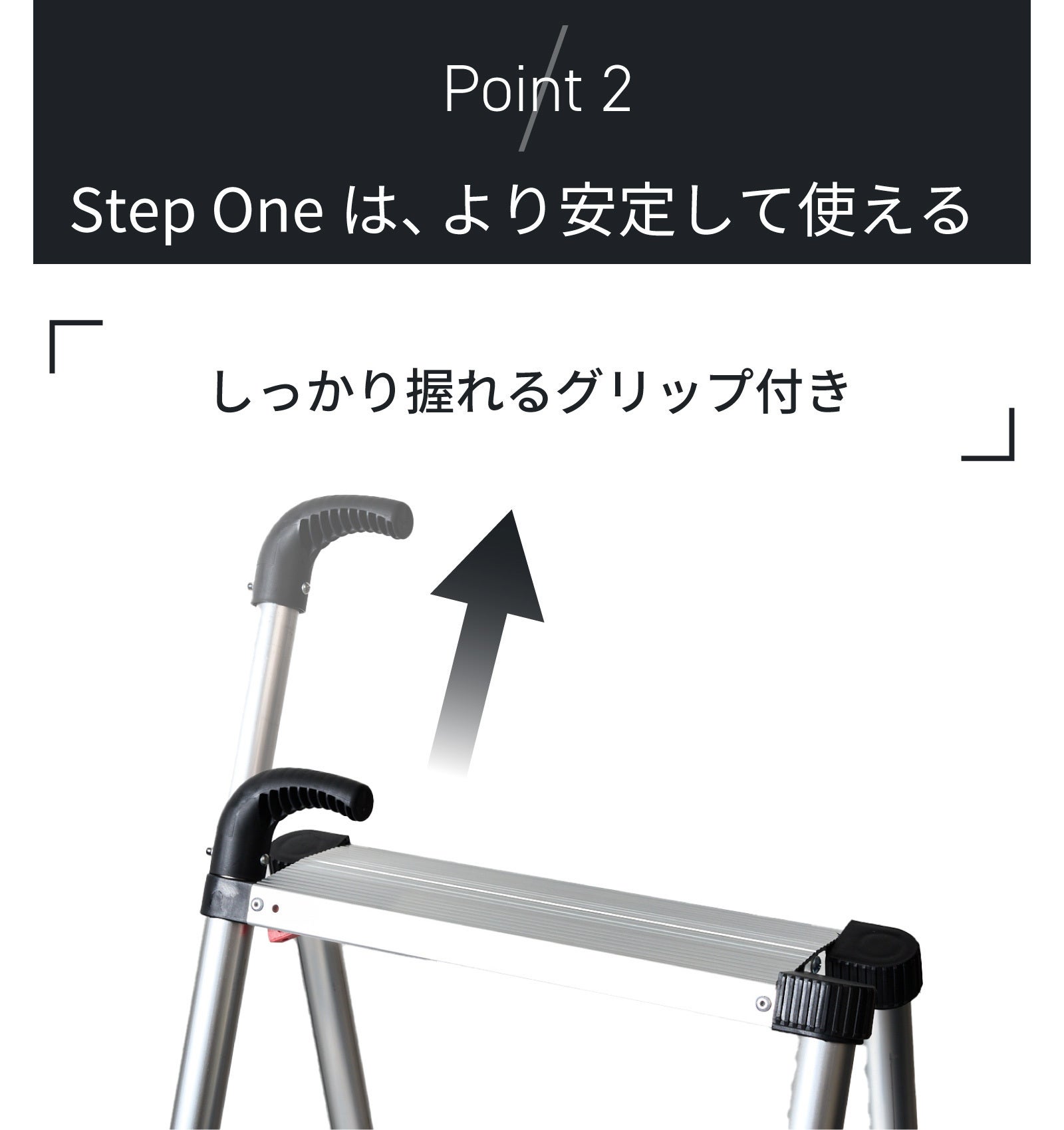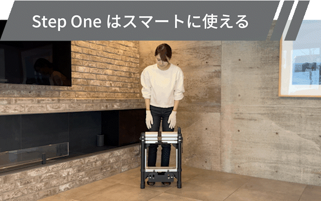 「Step One」には、脚立の最上部に出し入れ可能な「グリップ」が付いています。