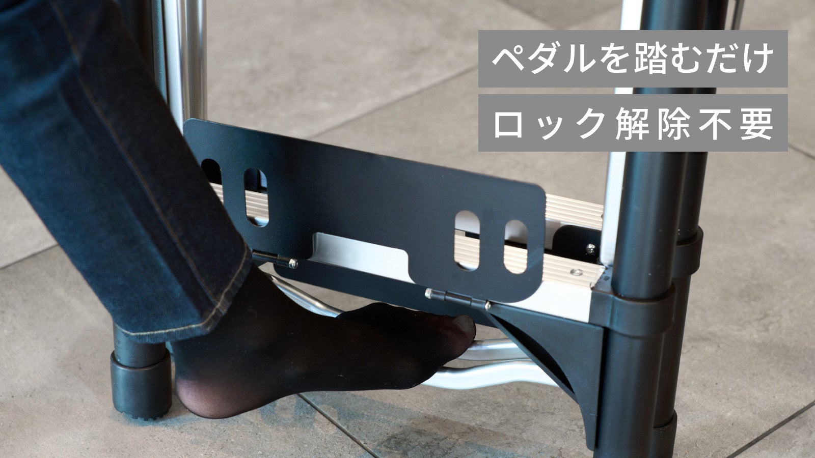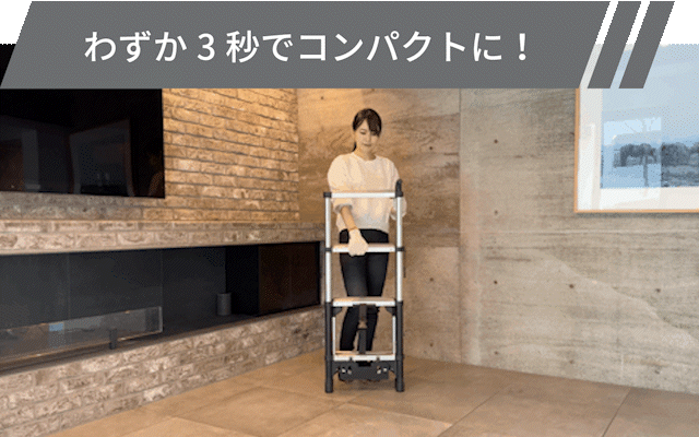 「Step One」は、足元のペダルを踏むだけで、あっという間に折りたたみが完了できます。
