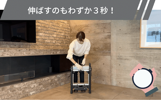 一般的な伸縮タイプの脚立のように、踏みざん(足をかける場所)の1段1段に設置されたロックを解除する必要はありません。