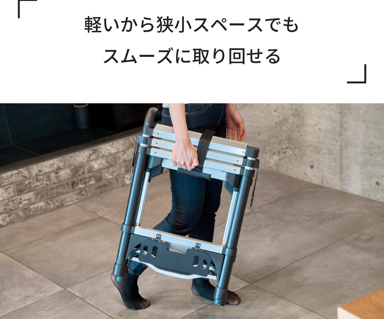 アルミニウム製で軽量設計(4段:6.3kg、5段:7.8kg)なので、狭小スペースでもスムーズに取り廻せ、また女性でも簡単に持ち運びが可能です。