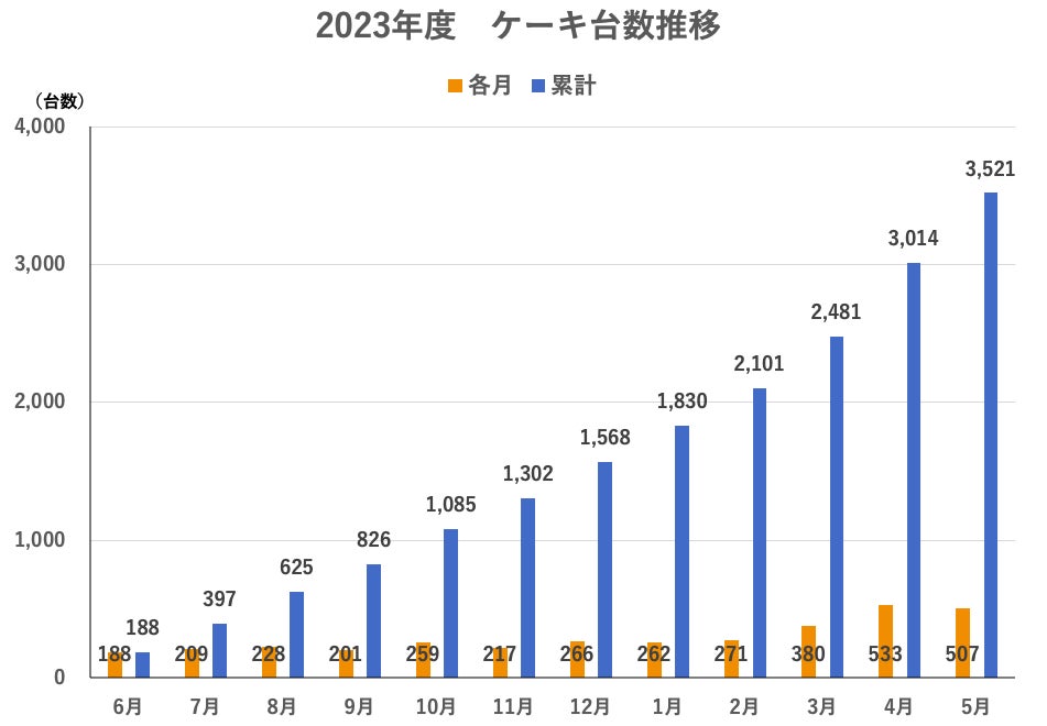 また、開始当初「1店舗で月5台」の支援から始まったものが、現在では【72店舗(7都県)で月500〜600台】を届けられるようになりました。