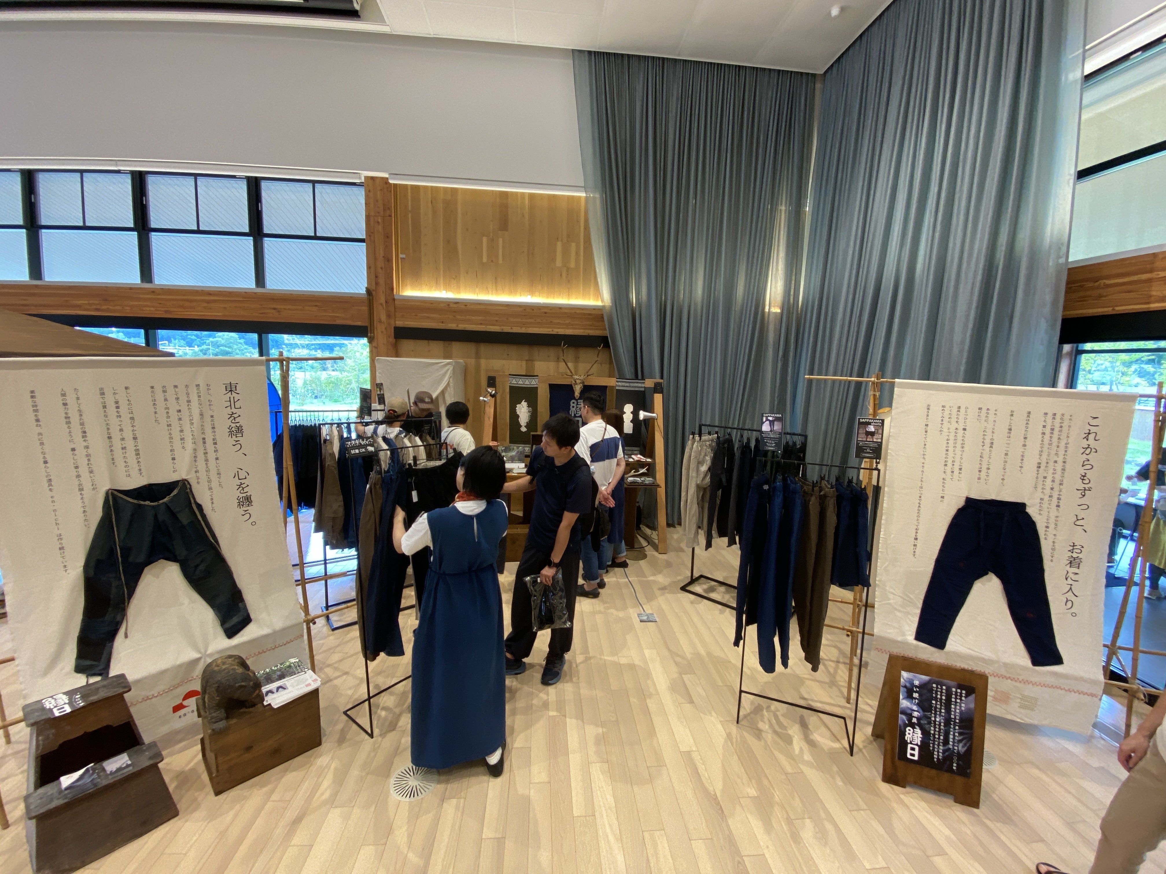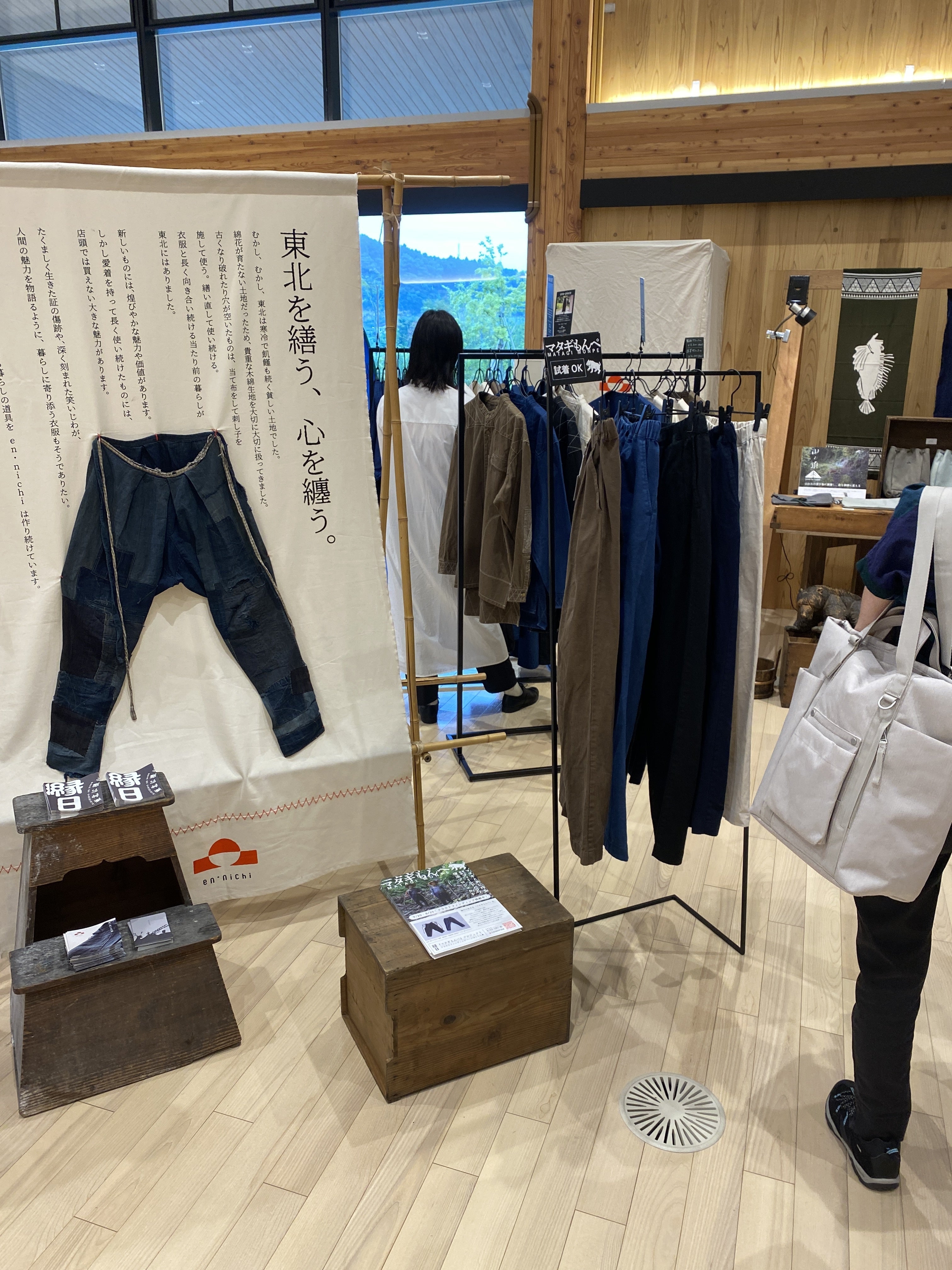 マタギもんぺも試着品を展示していて、沢山の方に試着いただいています。