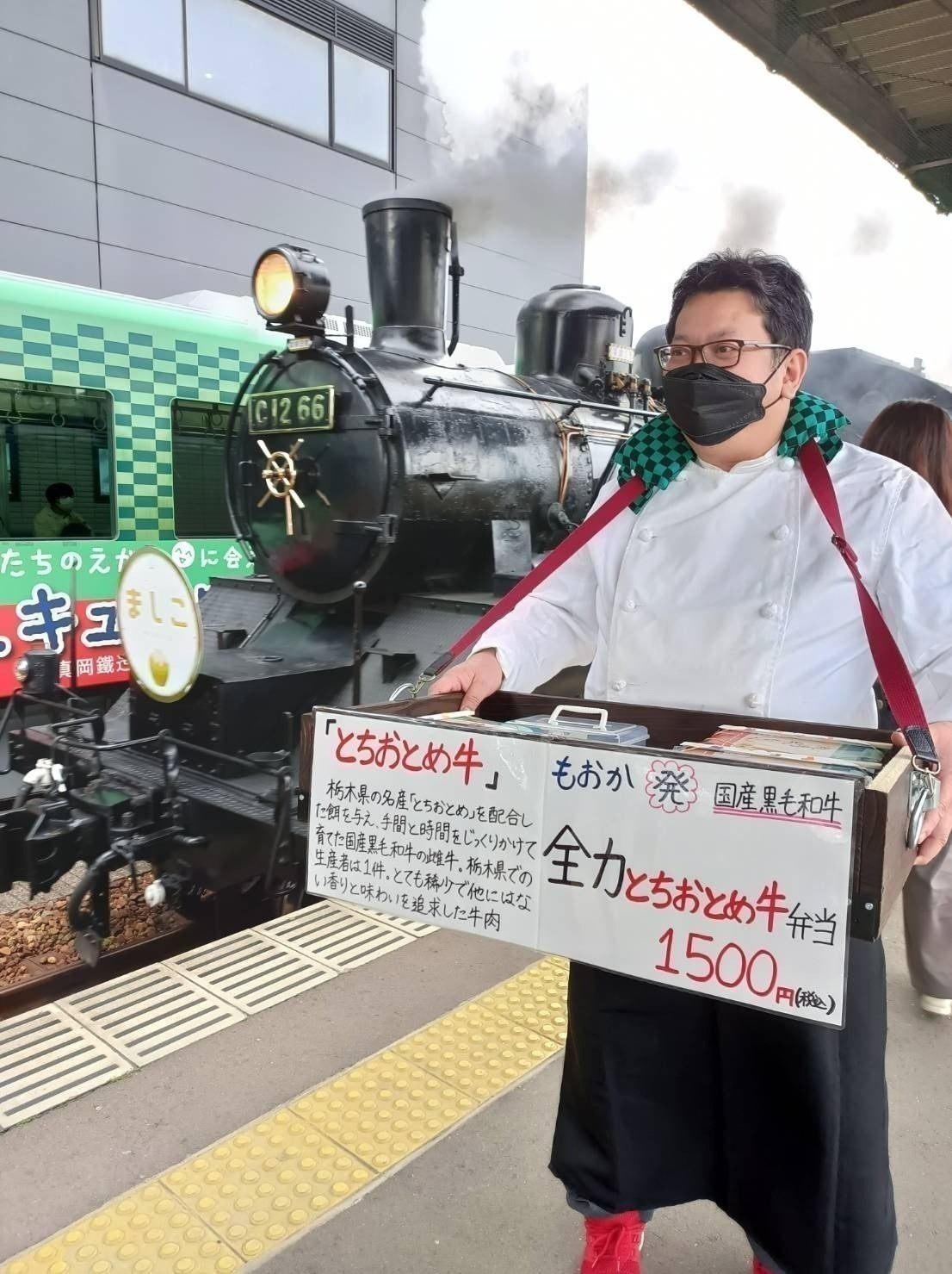 仙波と申します。私は東京から移住し、栃木県真岡鐵道の真岡駅周辺で暮らし、SLが走る街に住めることが、本当に凄いことだと思い、会社を設立し、真岡市で、飲食業、真岡駅で駅弁の販売をしております。