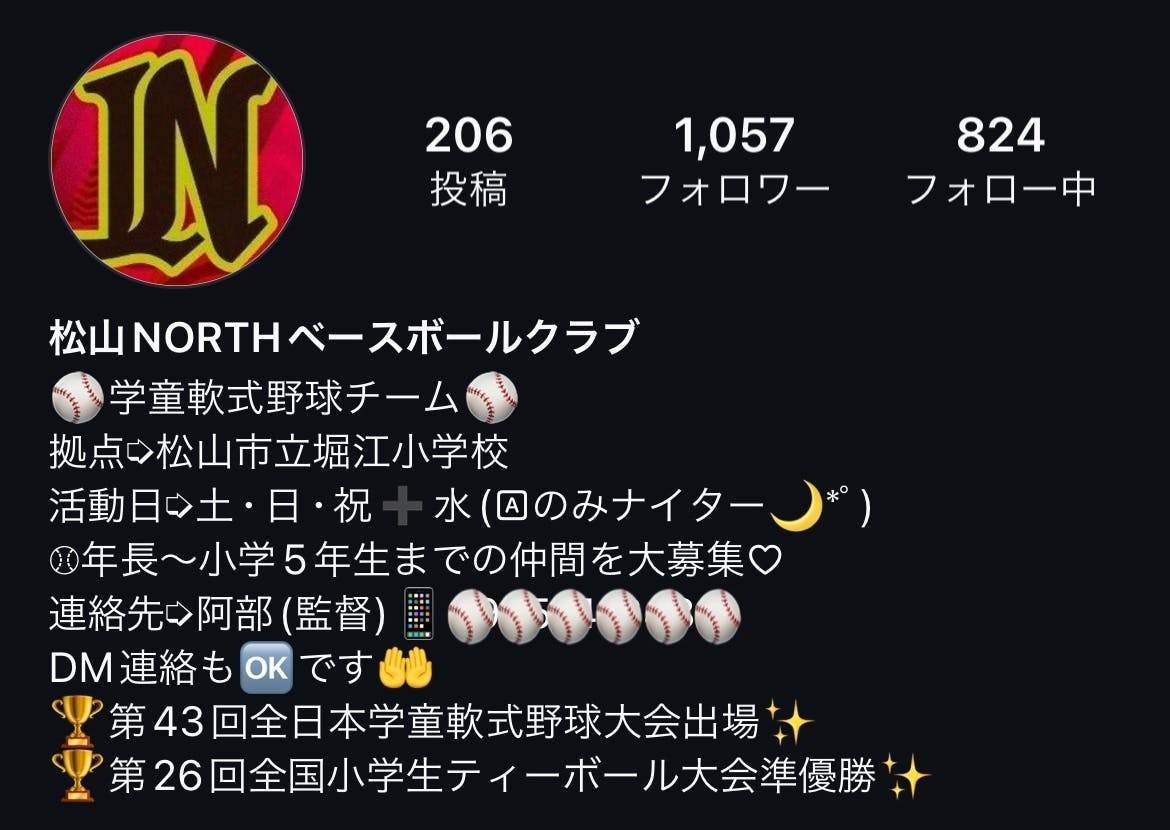 私たち【松山NORTHベースボールクラブ】は愛媛県松山市で活動している学童軟式野球チームです。2024年7月現在、年長児から6年生までの総勢37名が在籍しています。(内、女子2名)