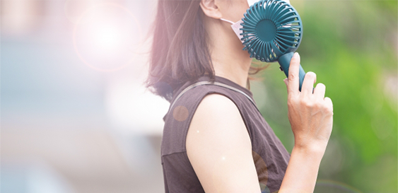汗はファンからの風によって素早く気化熱に変わります。風の通り道を保つために、タオルなどを首にかけないようおすすめします。
