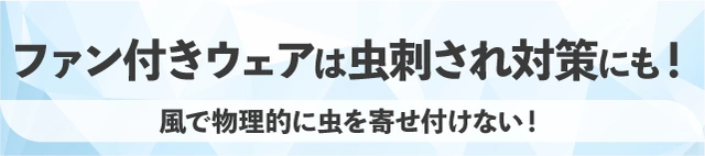 夏の屋外は虫刺されも気になりますが、ウェアが膨らんでいることと、袖口や首元から風が吹き出しているため、不快害虫対策にもなります。