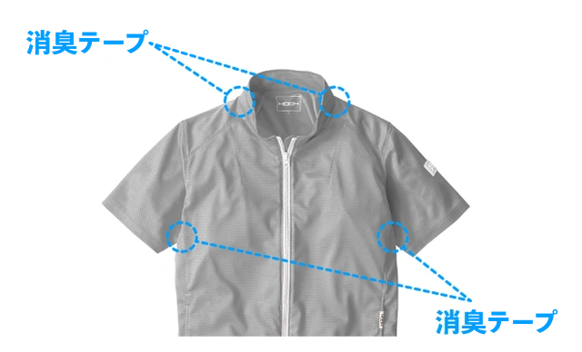 またファン付きニット半袖ブルゾン同様、肩の後ろと脇下の位置に、消臭テープを縫い込んでいます。