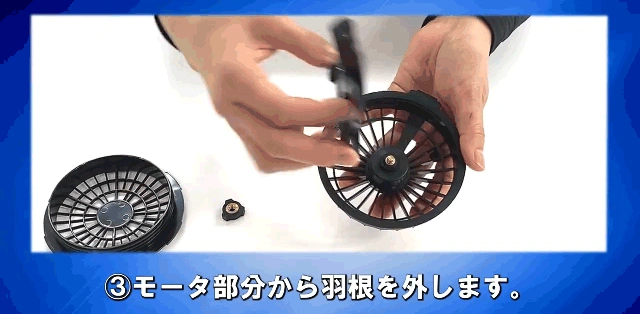 効率よく風を送るために設計されたファンは、羽まで外して水洗い可能!アウトドアでの汚れも簡単に清掃可能です。