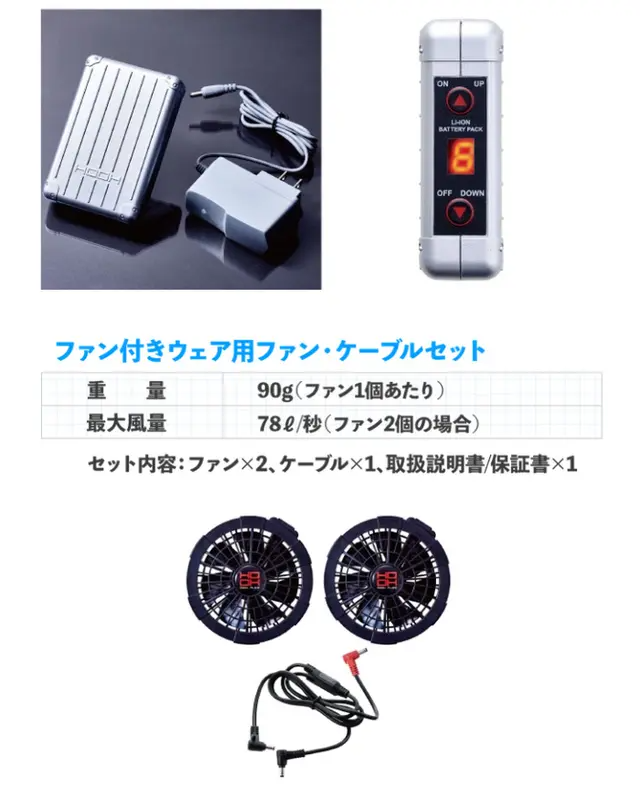 バッテリー、ウエア共に生産国(中国)商品企画販売(日本)