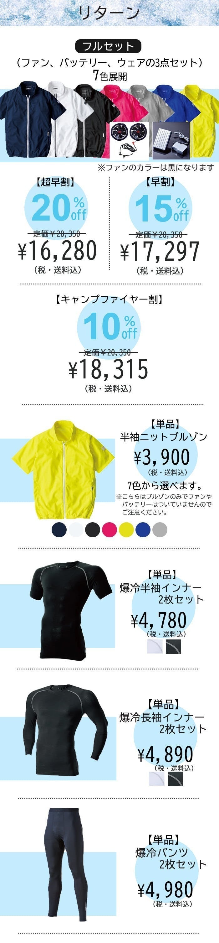ファン付き半袖ニットブルゾンをより多くの方に体感していただくため、特別に高い割引率のリターンを限定数でご用意しています。