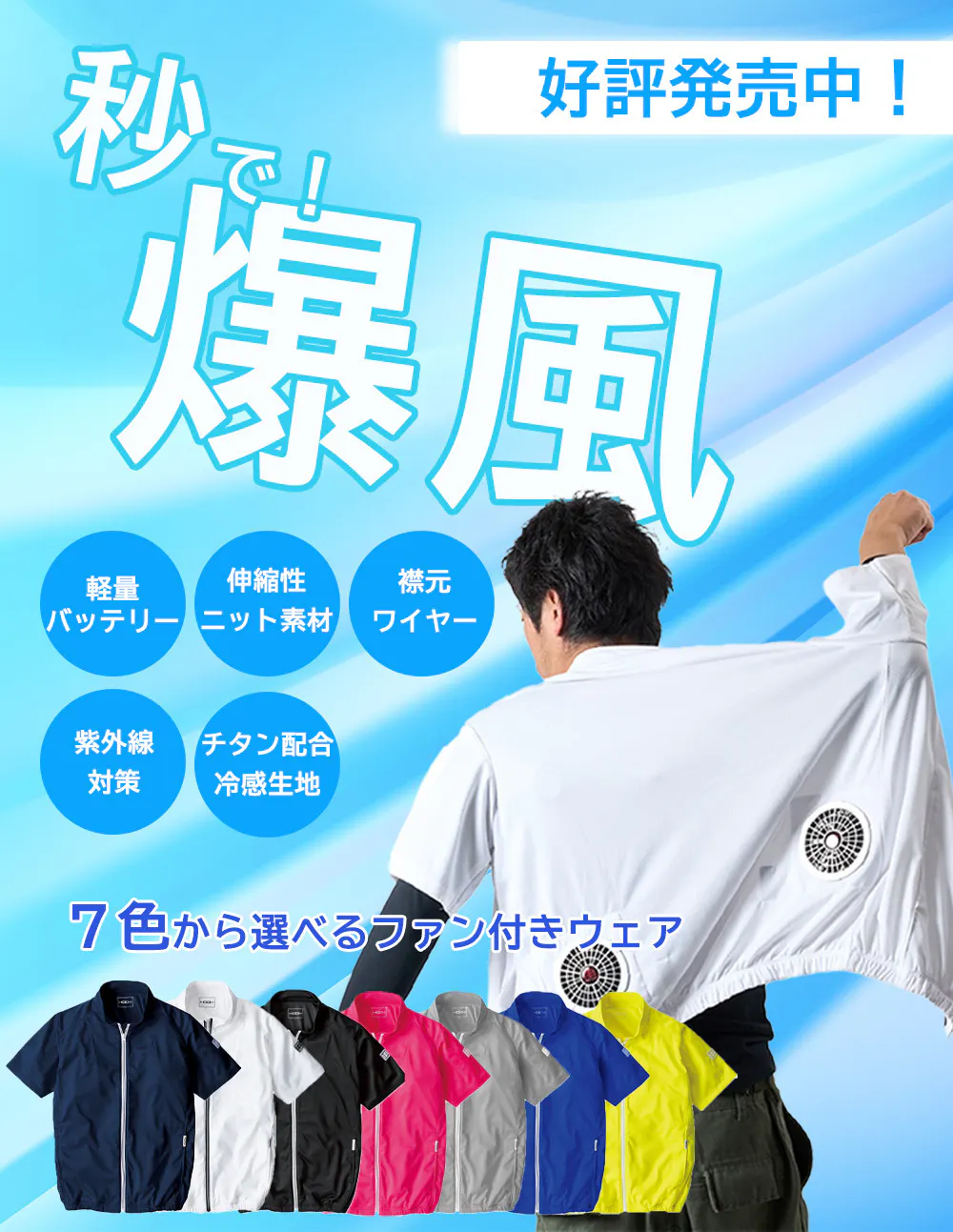 【秒で爆風・数量限定】熱中症対策に!7色から選べるファン付き半袖ニットブルゾン!