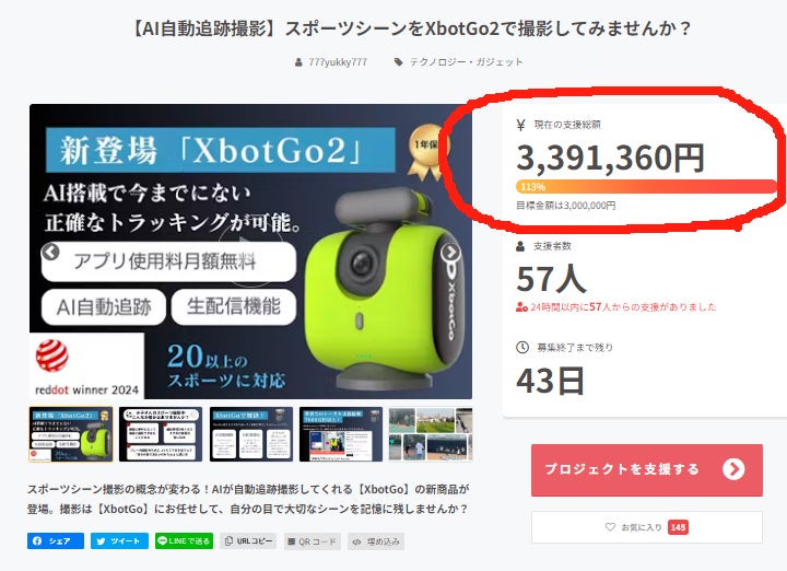 今回のプロジェクト「XbotGo2 Chameleon」が公開6時間で【目標金額300万円】を達成したことがライブドアニュースに掲載されました。