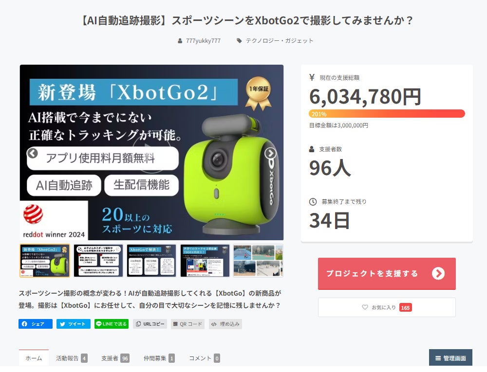 現在、<25%OFF>の「XbotGo2+リモコン」早割リターンが人気となっております。
