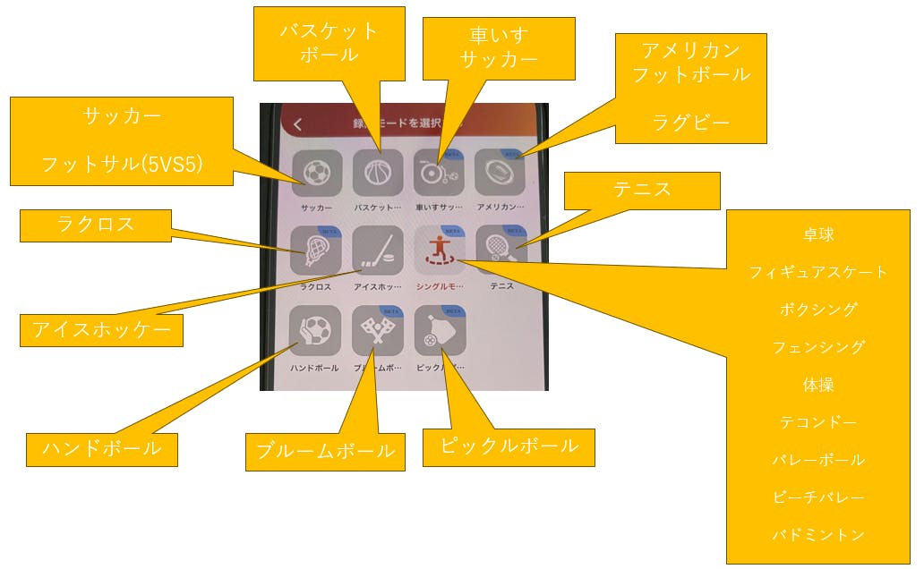 その他のスポーツモードを選択した場合、録画ボタンを押すと、