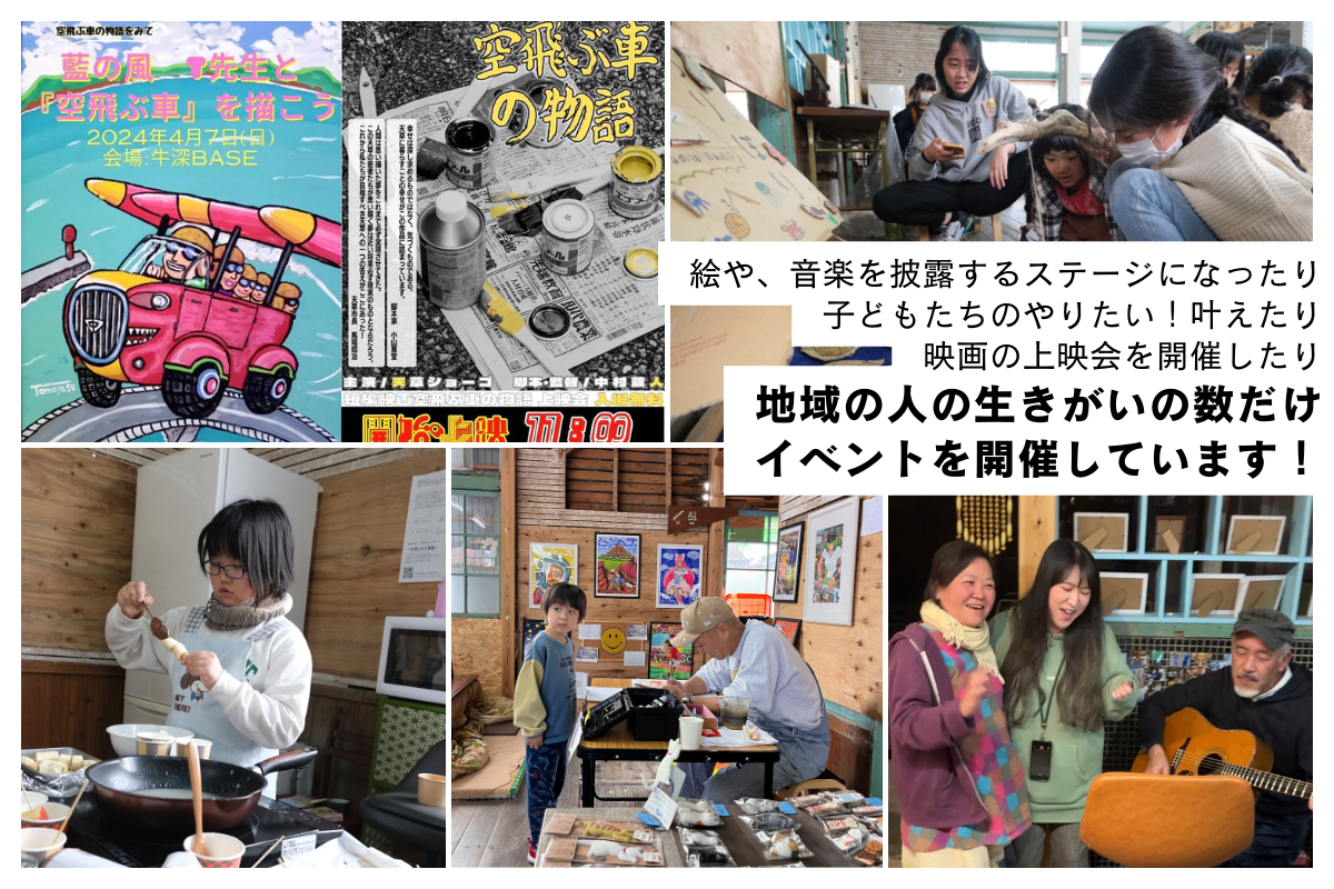 2023年4月にオープンした牛深BASEは、「よそもんとじもとの関係案内所」「生き甲斐を育てあう場所」「町のリビング」になることを目指して、活動しています。少しずつ少しずつ訪れてくる人も増え、いつも会話が絶えない場所になってきています。