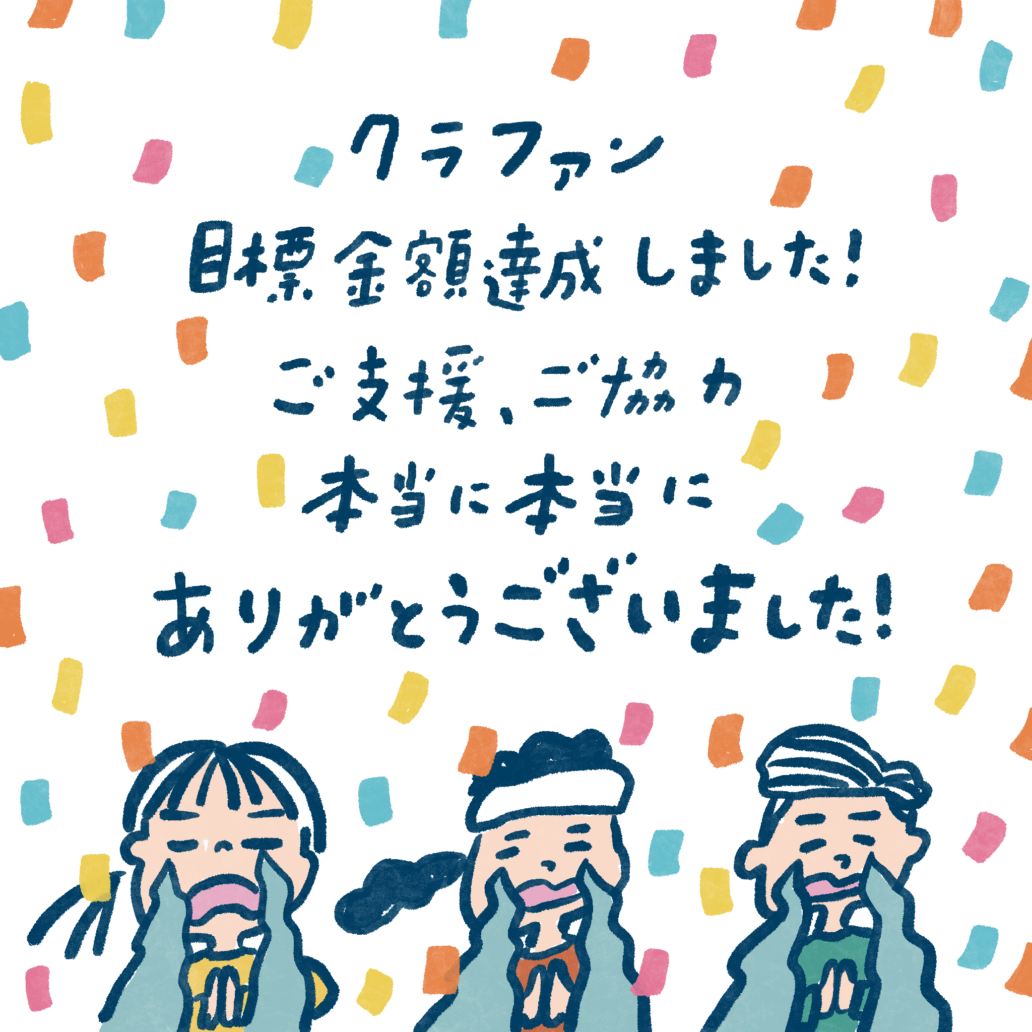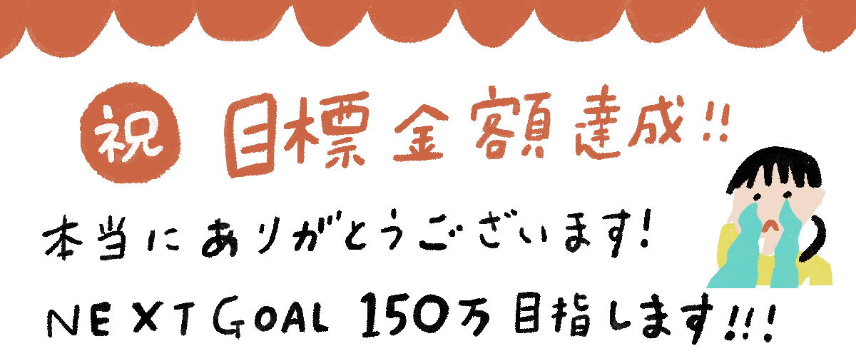 おかげさまで、目標金額達成しました。。。こんなにはやく達成できるとは思っておらず、なんだか自分が思っている以上にたくさんの人に応援してもらっていたんだあ。。と涙がでます。本当にみなさまありがとうございます。