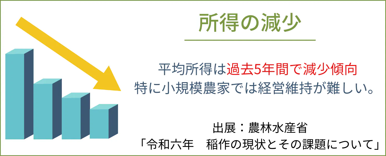 中小農家が多いこの地域の農家の経営を取り巻く環境は厳しく、事業承継が進まず、 廃業する農家が増え耕作地が縮小し、農地の休眠地が目立つようになっています。