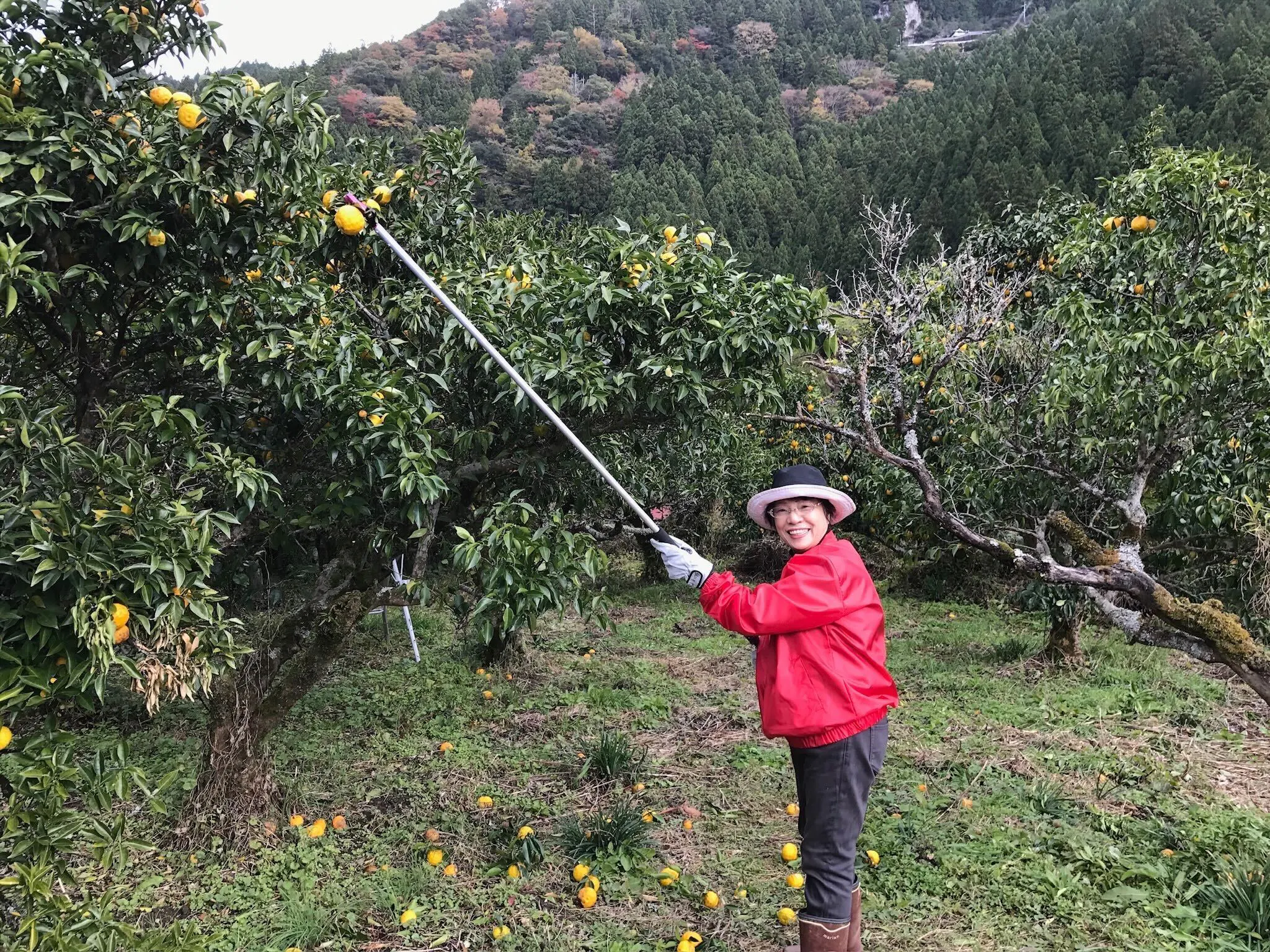 最初はおぼつかなかった柚子収穫も、講習を受けながら徐々に上達していきました。