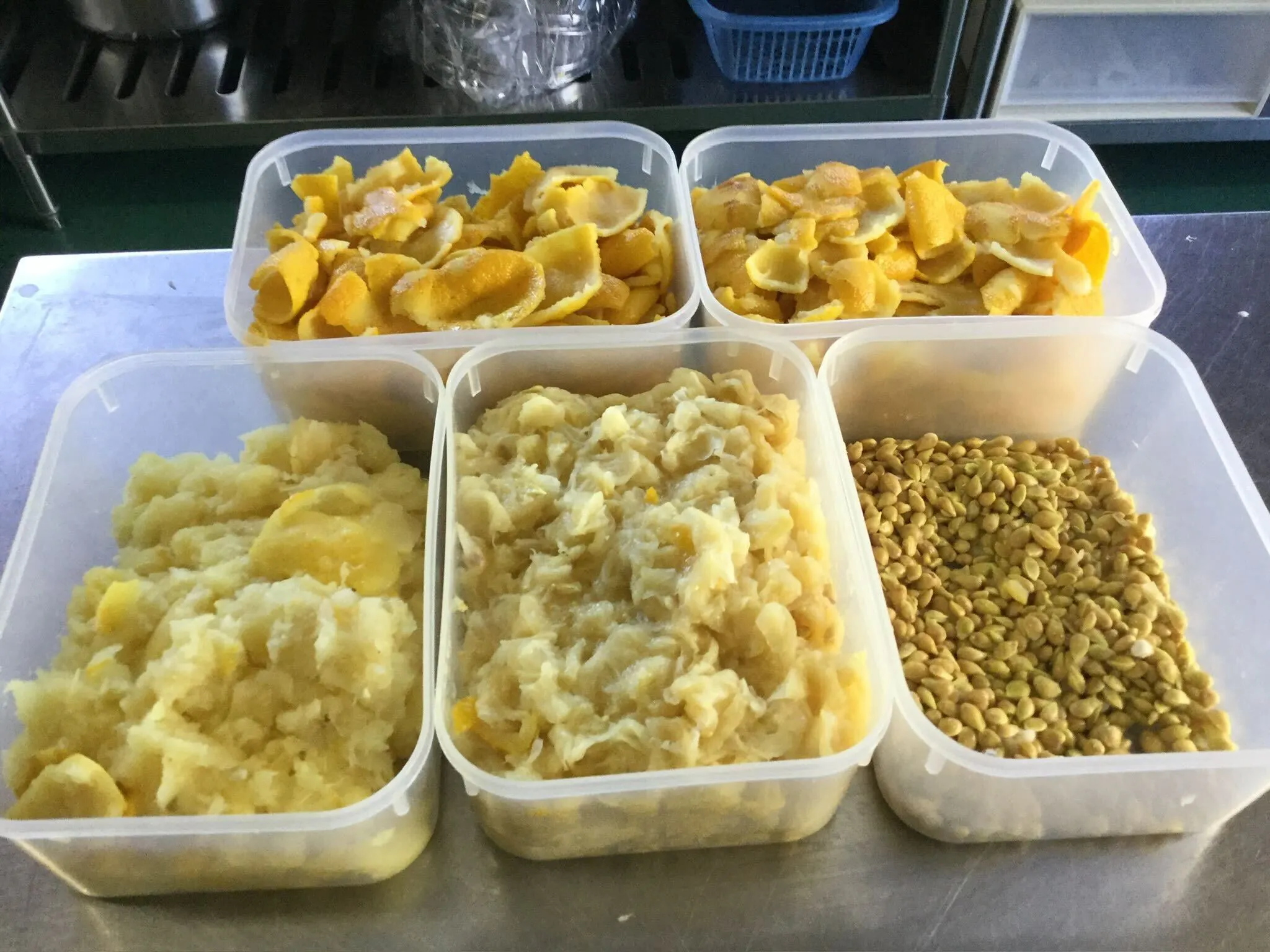 綺麗に皮、実、種に分けた柚子