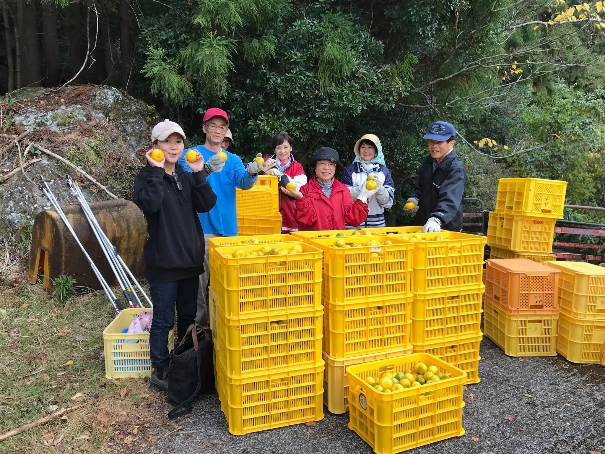 農家さんたちの姿を見て「どうにかして助けてあげたい」と想いがこみ上げてきた私は、農家さんに「もしよろしければ、ぜひ私に柚子を買い取らせていただけないでしょうか」と相談し、仲間と一緒に収穫に向かいました。