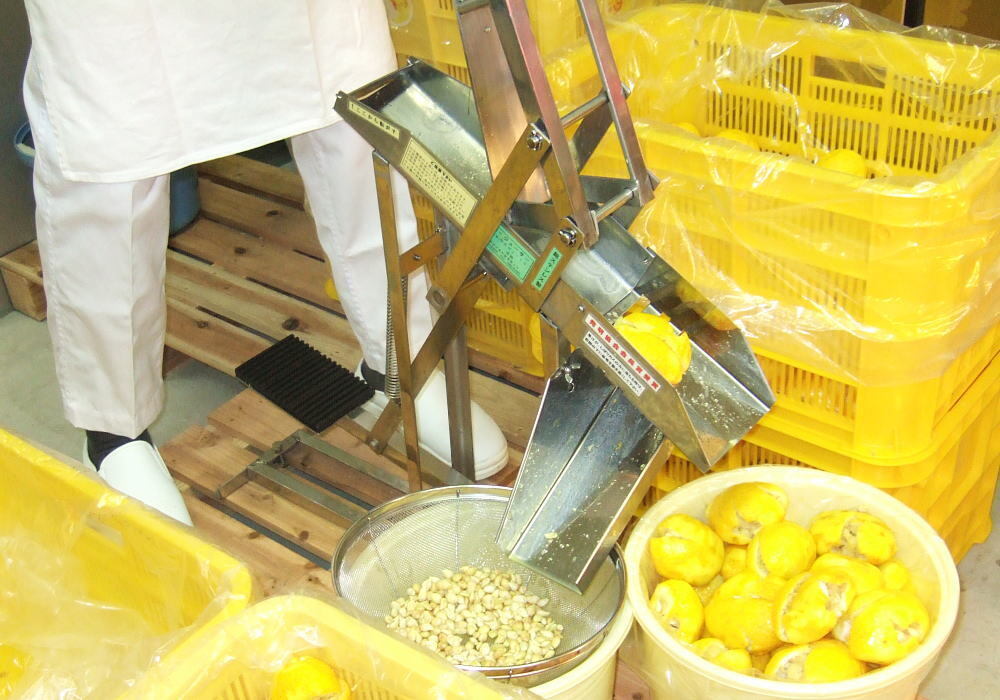 徳島などでゆず酢、と言えば、米を発酵させたお酢にゆずを混ぜたものではなく100% ゆず果汁のことを指します。柚りっ子のゆず果汁は、収穫したゆずを写真のように一つ一つ手押し搾りして抽出しています。あまり押しつぶさないようにしているので、苦味や雑味が少なく、ゆずの濃厚な風味がストレートに味わっていただける果汁になっています。絶妙な力加減での手押し絞りは、手間がかかりますが商品のクオリティを保持するためには大切な作業です。この果汁をたっぷり使用しているのが、柚りっ子商品の美味しさの秘密の一つなのです。(果汁も販売していますよ!)ゆずの魅力がストレートに伝わるゆず果汁を、柚りっ子を応援していただき、ぜひ一度味わってみて下さいませ。