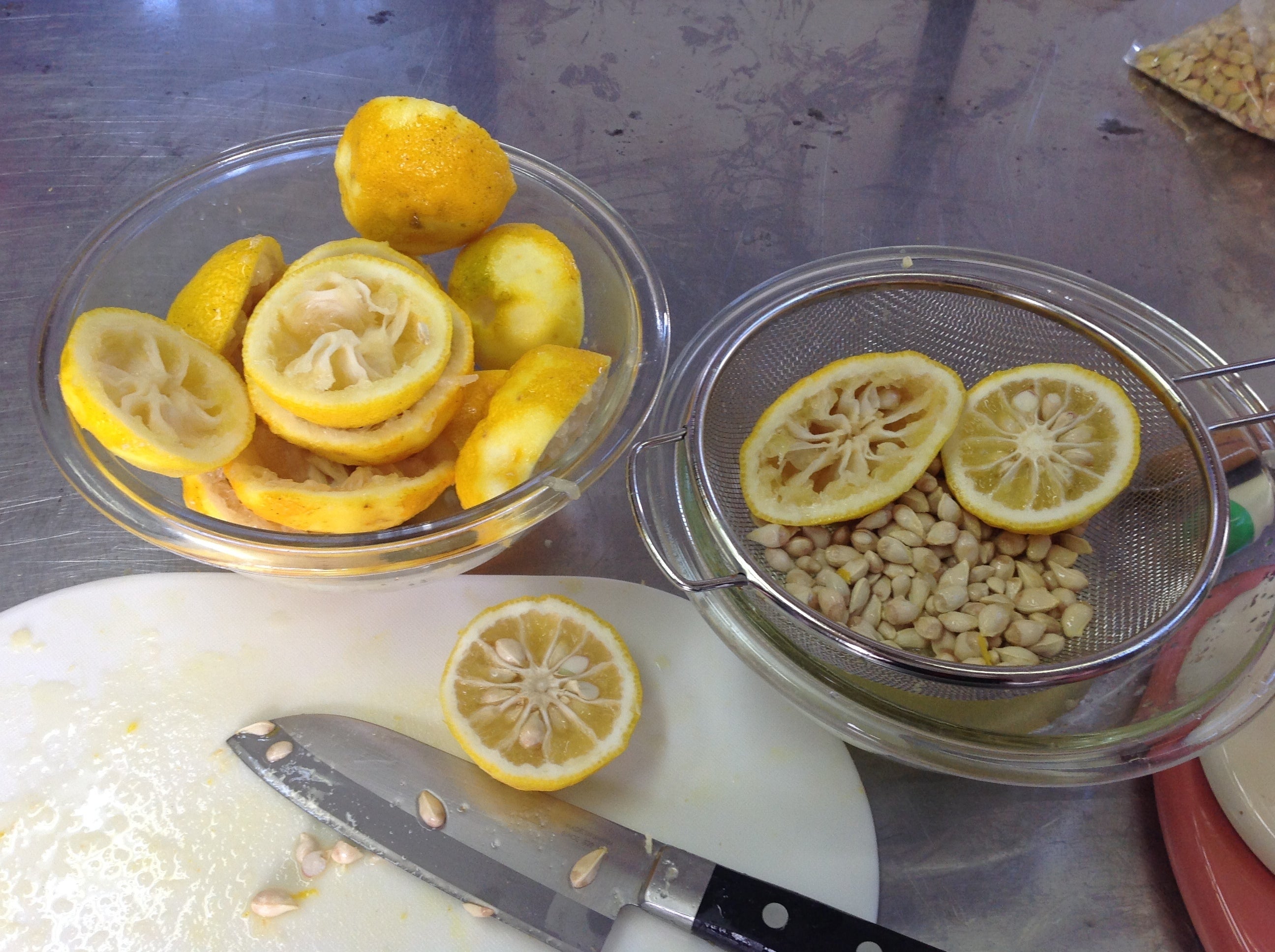 綺麗に皮、実、種に分けた柚子