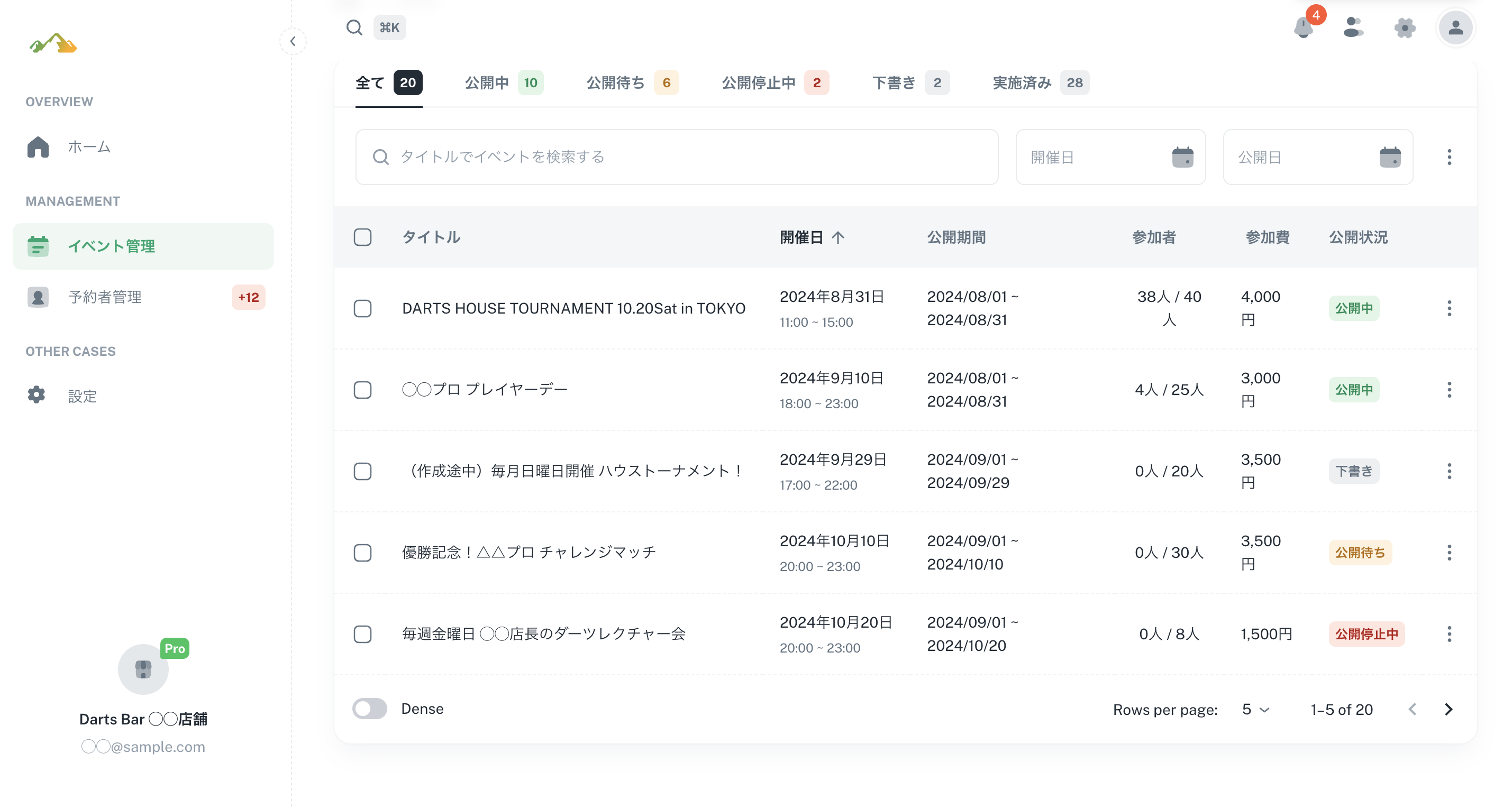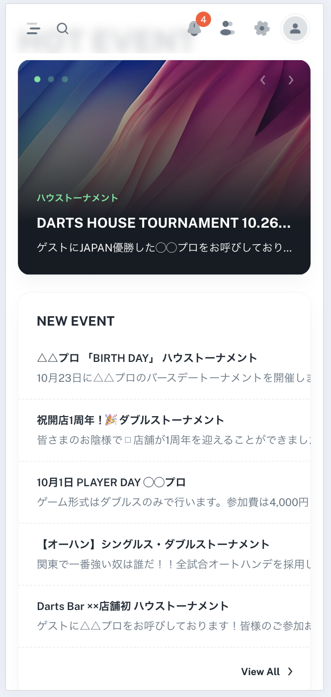 DartsPeak正式発表日の15日前から先行して店舗アカウントの登録と、イベント作成等の全ての機能をご利用できます。