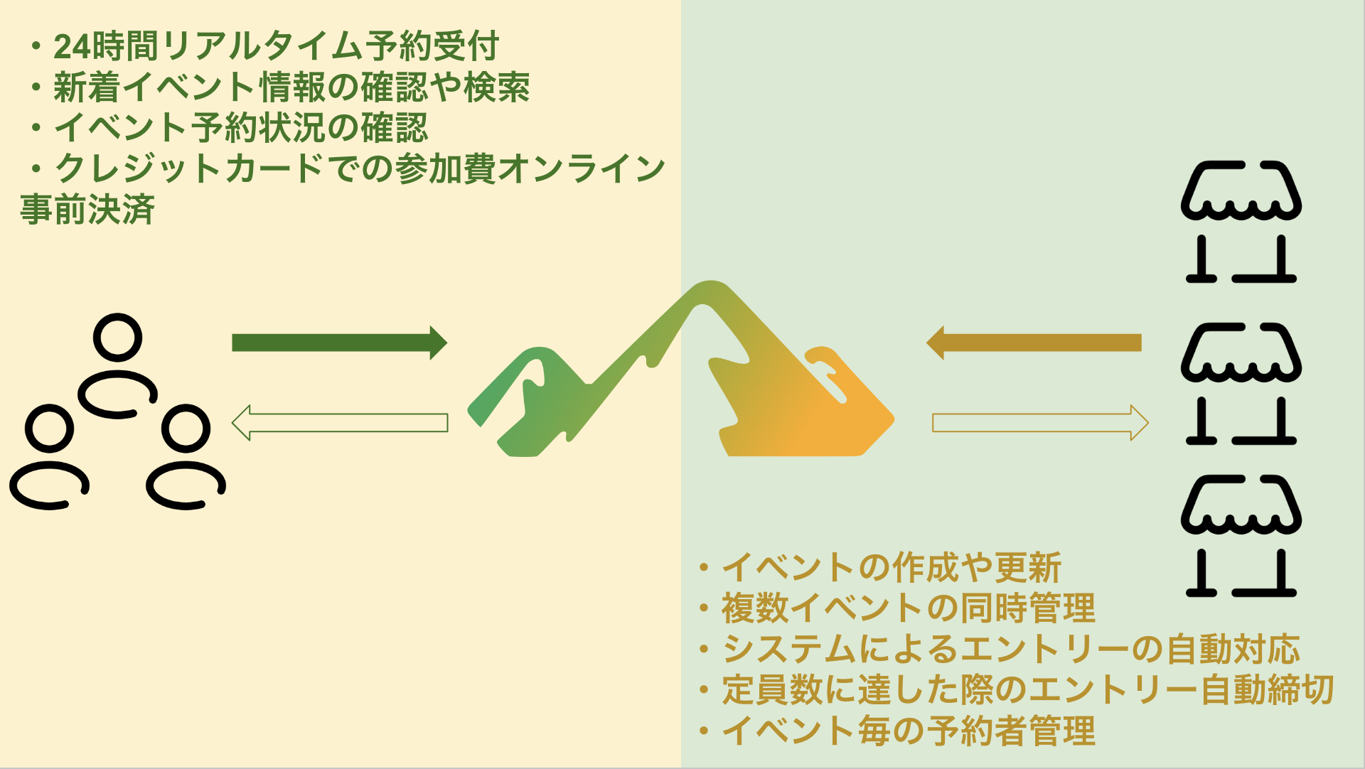 ユーザーは自身のアカウントから予約しているイベントや、過去に参加したイベントを確認することができます。