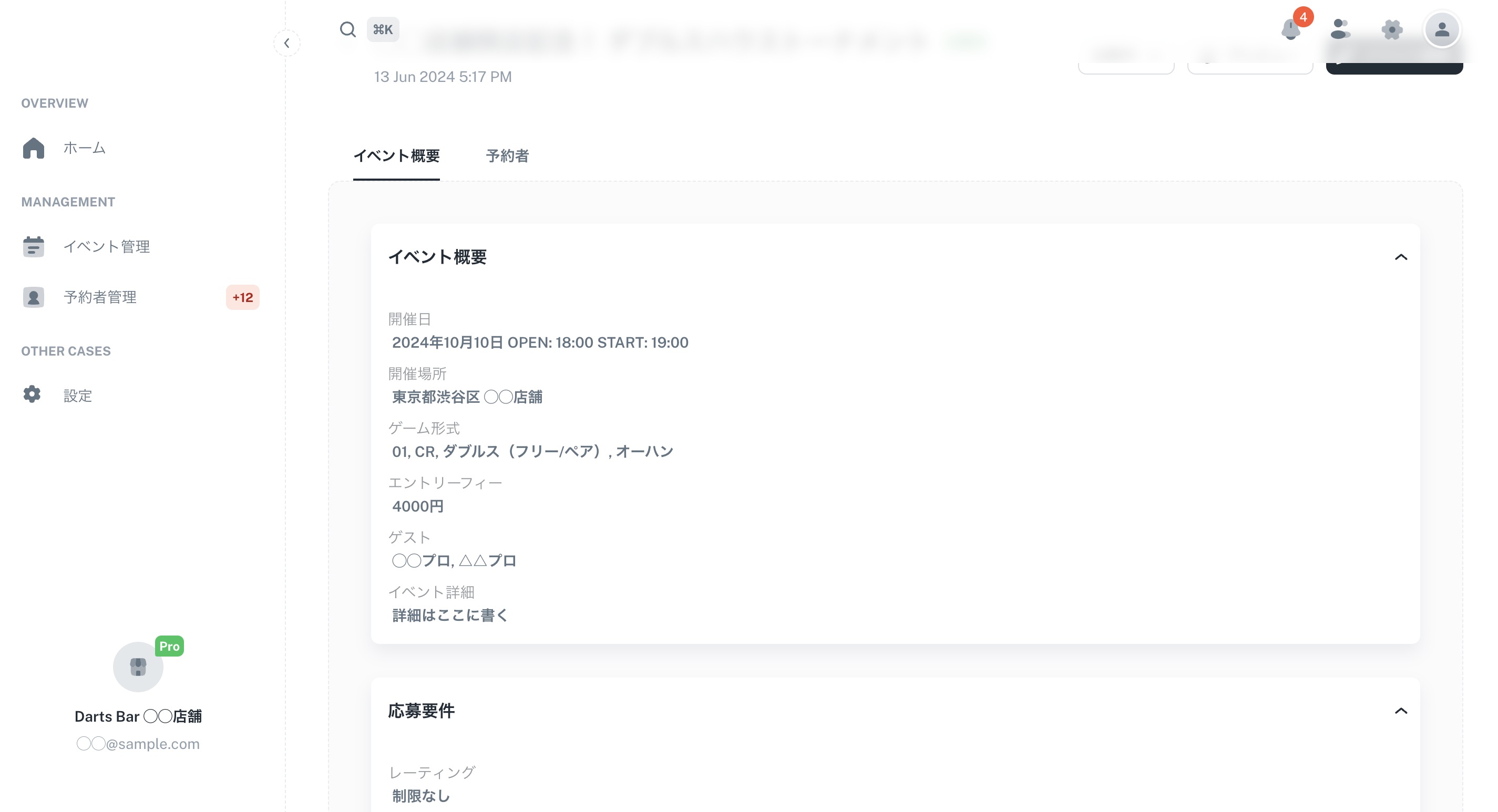 ・イベント予約システムを利用しようとしたけど、ダーツのイベント形式にいまいち合っていなくて使いづらかった