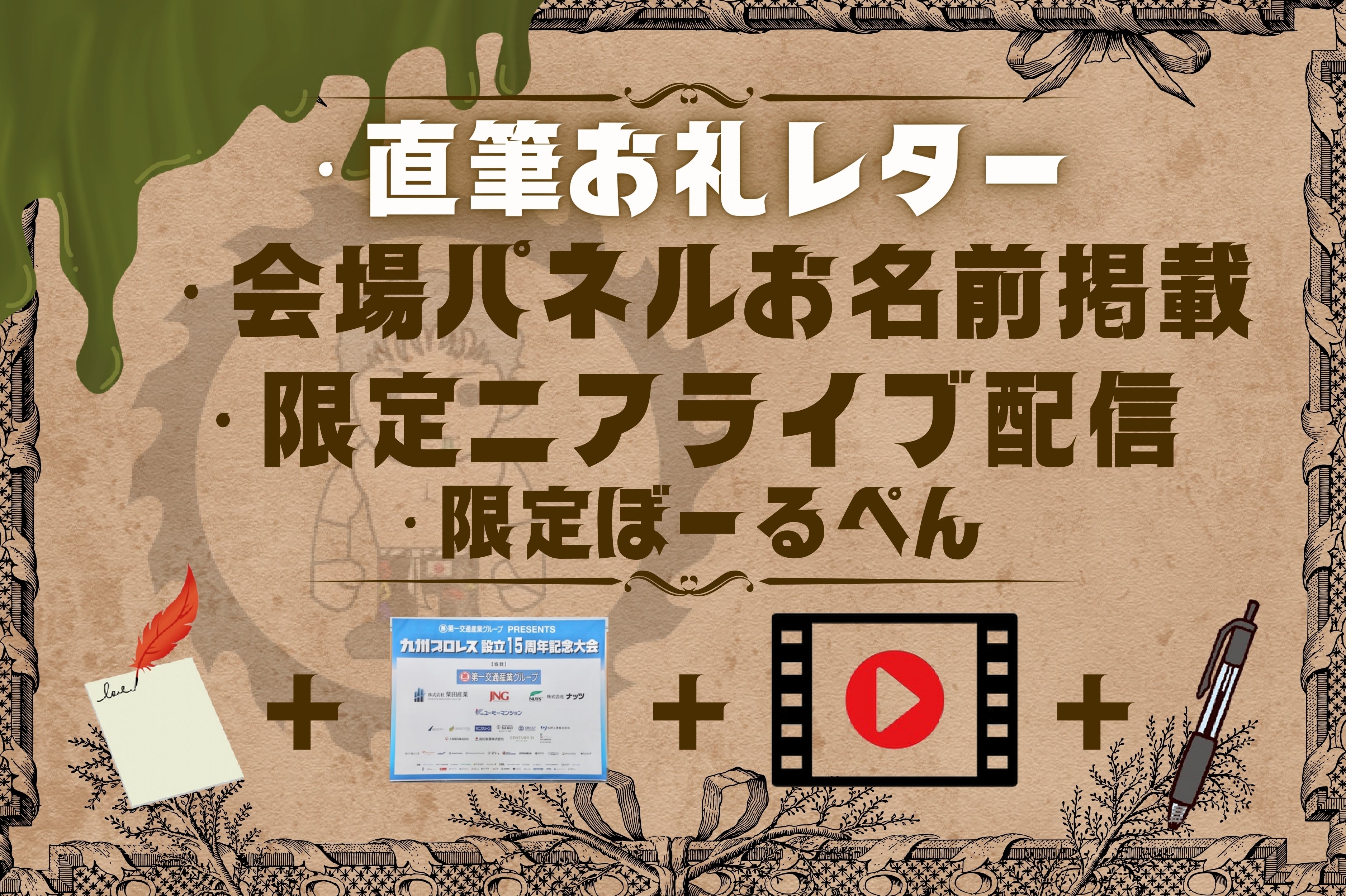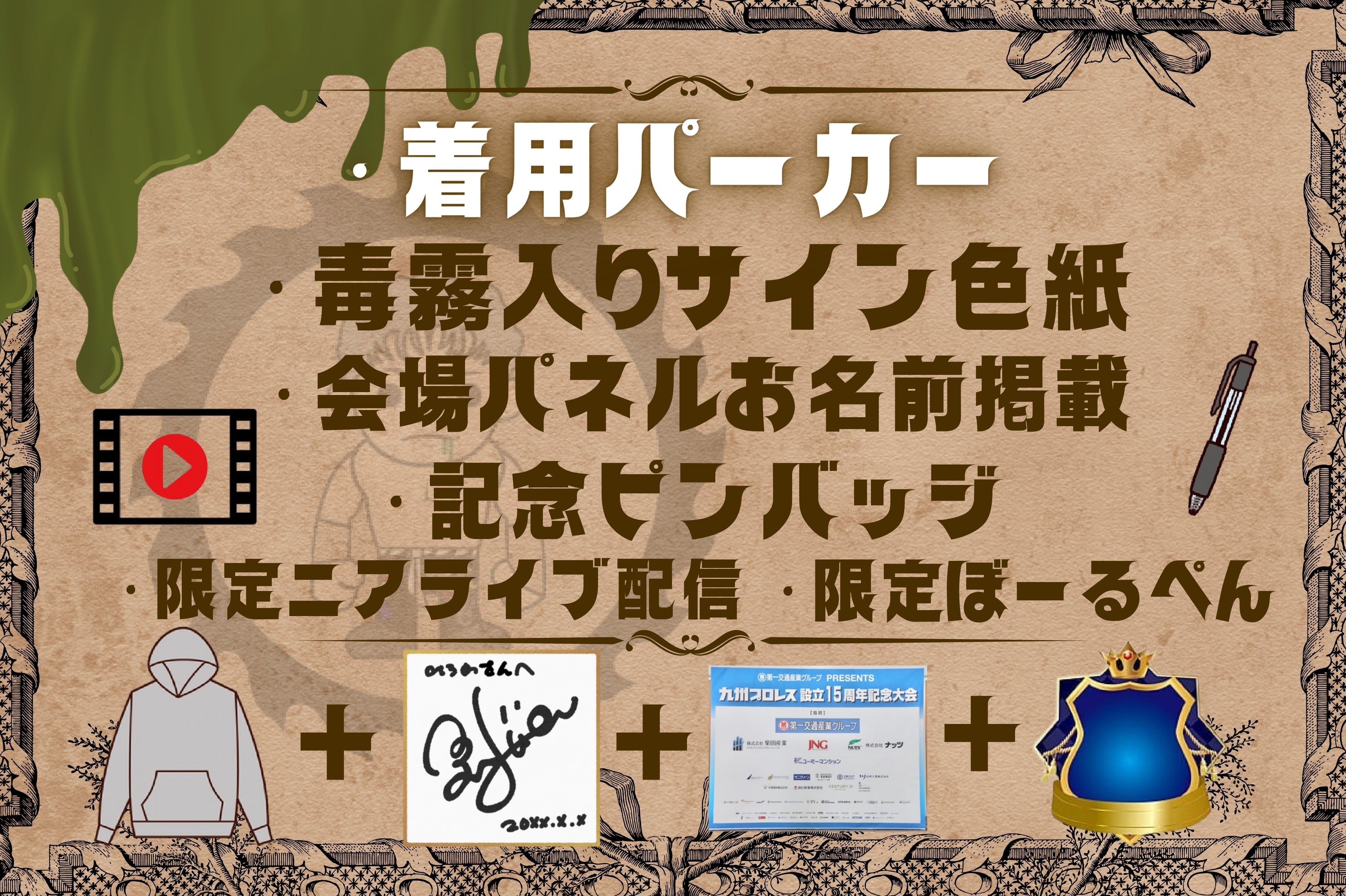 毒霧吹きサイン入り色紙と試合の限定配信がセットになったリターンです。